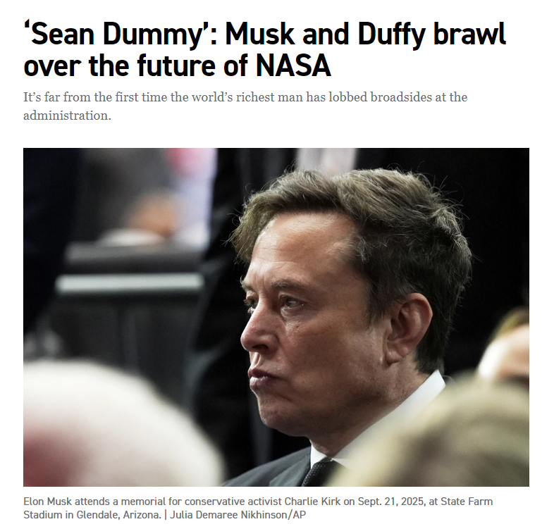 日前多家美媒爆料称,美国交通部长兼国家航空航天局(NASA)代理局长肖恩·达菲拟将NASA并入美国交通 部。此外,达菲近期有关美国航天局和SpaceX公司的一系列做法,引发了美国亿万富豪马斯克的强烈抨击。 肖恩·达菲 资料图 图源:外媒 21日,马斯克在社交平台X上连发多条网帖抨击达菲,他称达菲为"笨蛋肖恩"、"危险又愚蠢的笨蛋",指责后 者"试图杀死NASA"。马斯克还取笑了达菲攀岩运动员的经历,问网友"我们该让一个靠爬树出名的人负责美国 的太空计划吗?" 据报道,马斯克曾力推他的朋友艾萨克曼成为NASA局长,后者也曾获得美国总统的提名。5月,在马斯克结束 在"政府效率部"的工作并离开白宫后不久,白宫撤回了对艾萨克曼出任NASA局长的提名,并决定由交通部长达 菲临时代理。据报道,达菲的代理局长任职权限将于今年底到期,而NASA把多项重大任务安排在明年,包括 推迟已久的载人绕月飞行,这让美国政府急需确定正式局长人选。 知情人士披露,达菲和艾萨克曼的代表正分别向政府要员展开游说,电话甚至打给了特朗普本人。双方都强调 自己才是领导NASA的合适人选。 据美国"政治"新闻网21日报道,达菲曾在日前批评马斯克的Spa ...