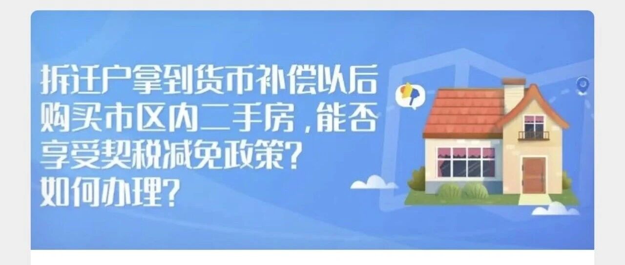 拆迁户拿到货币补偿以后购买市区内二手房,能否享受契税减免政策?如何办理?