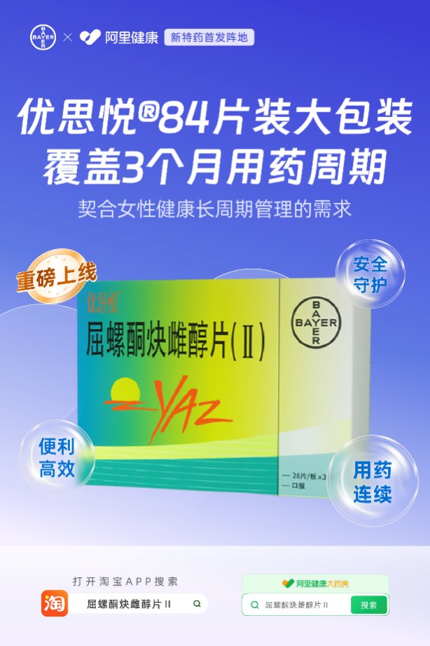 拜耳原研口服避孕药优思悦®84片大包装在阿里健康首发