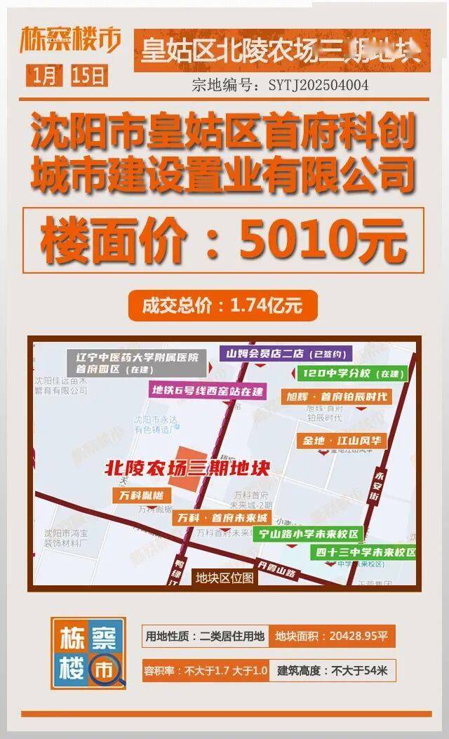 地块成交详情 - 沈阳市皇姑区首府科创城市建设置业有限公司以5010元/建筑平方米的单价摘得皇姑首府新区北陵农场三期地块 [1] - 地块成交总价为17399.3367万元 [1] - 地块土地面积约20428.95平方米,为二类居住用地,容积率不大于1.7大于1.0,商业比例不大于5% [4] 地块区位与周边配套 - 地块位于首府新区核心开发区内,四至规划道路明确 [4] - 南侧紧邻万科胤樾,北侧为建设中的辽宁中医药大学附属医院首府院区,东侧为已入住的万科首府未来城、金地江山风华 [4] - 周边配套包括已开放的首府中央公园、丰富的社区底商、在建的120中心分校及地铁六号线西窑站 [4] 地块成交的市场意义与价值 - 此次成交是沈阳2026年土地市场的“开年首拍”,为区域发展赢得响亮开局 [1] - 地块起拍价较2024年出让的两宗地块微涨2%,且在市场回温之际轻松成交,表明优质高净值地块具备坚实价值支撑和升值前景 [8] - 地块的成功出让验证了优质地块的坚实价值和增长潜力,提振了整体市场信心 [4] - 该地块是皇姑区2026年土地供应的“先手棋”,体现了市场对皇姑区首府核心区域价值的认可 [3] 对区域发展的带动效应 - 商业活力提升:地块规划的少量商业将补充区域商业空白,吸引社区便利店、特色餐饮、亲子服务等业态入驻,完善“15分钟生活圈” [3] - 配套协同完善:住宅项目的建成将推动周边教育、医疗、交通等配套升级,提升区域公共服务水平 [3] - 人口集聚与消费拉动:地块容积率适中,将打造高品质住宅区,吸引刚需及改善型人群入住,促进区域经济循环,提升居住品质与吸引力 [3] - 标志着首府新区建设空间拓展进入新阶段,推动城市骨架进一步北延,通过优质住宅供给丰富居住选择、夯实人口导入基础 [12] 首府新区发展现状与前景 - 区域开发全面提速,配套成熟度显著增强,万科、华润置地、金地、旭辉等多家品牌房企已落子,多个高品质标杆社区已建成 [10] - 教育资源持续导入:43中学、宁山路小学已开学,120中学分校建设稳步推进 [10] - 商业生态完善:涵盖塔斯汀、瑞幸等日常消费,成大方圆、五洲通大药房等便民服务,2025年亮相的东北首座新型社区文化空间“万樾会”,以及已正式签约的山姆会员店(二店) [10] - 未来地块开发将带动板块资产价值与社区品质同步提升,为培育高质量社区文化、丰富文旅消费等配套场景创造条件,是构建“首府科创产业片区”的关键一环 [12] 项目定位与行业影响 - 结合1.7的低容积率与当前倡导的“好房子”理念,项目有望成为皇姑区推动区域人居水平高质量升级的品质标杆 [6] - 皇姑区从2025年沈阳商品住宅销售区域亚军,到2026年的土地先锋,正成为沈阳房地产市场的“稳定器” [4] - 后续皇姑区将推出更多优质地块,持续推动城市更新与产业升级,为区域高质量发展注入新动能 [3]