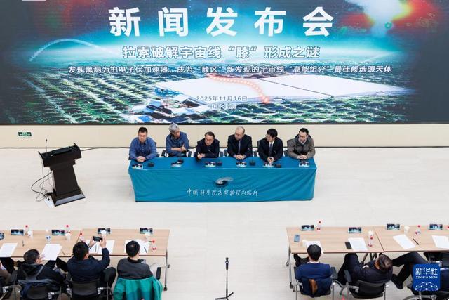 来源:新华网 量,为揭示黑洞在宇宙线起源中的作用提供重要观测证据。 此次研究由中国科学院高能物理研究所牵 头的国际研究团队完成,相关论文成果在国际学术期刊《国家科学评论》(英文版)和《科学通报》 (英文版)上发表。 作为以宇宙线观测研究为核心目标的国家重大科技基础设施,"拉索"此次新发 现,不仅破解了困扰学界多年的宇宙线"膝"形成之谜,更是第一次在观测上将"膝"结构与具体类型的天 体——黑洞喷流系统关联起来,为理解宇宙的极端物理过程开辟了一条新的途径。 新华社记者 金立旺 摄 11月16日,在中国科学院高能物理研究所举行的发布会上,"拉索"首席科学家、中国科学院高能物理研 究所曹臻院士在介绍科学成果。 11月16日,我国高海拔宇宙线观测站"拉索"发布最新科学成果,表明 由黑洞与伴星相互作用形成的微类星体是强大的"粒子加速器",可将宇宙线加速至"膝"及以上的高能 量,为揭示黑洞在宇宙线起源中的作用提供重要观测证据。 此次研究由中国科学院高能物理研究所牵 头的国际研究团队完成,相关论文成果在国际学术期刊《国家科学评论》(英文版)和《科学通报》 (英文版)上发表。 作为以宇宙线观测研究为核心目标的国家重大科技基础设 ...
