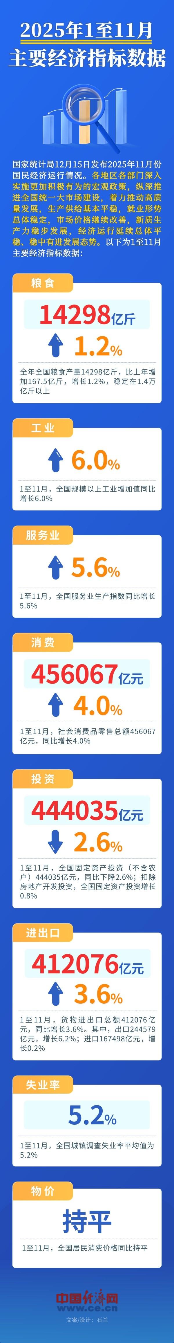 【图解】稳中有进!一图速览前11月主要经济指标数据→