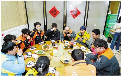 桌子另一边,传来一阵年轻人的笑声。外卖小哥王杨林和3个老乡,都是"00后",从江西来杭州打 拼,干起了快递。年纪虽小,居住在拱宸社区的他们却已是这片街巷的"活地图"。"平时都是我们给别 人送东西,没想到今天有人为我们张罗了一桌饭。"小王说,这话引起了同桌几位"前辈"的共鸣,杯子 在笑声中碰到一起。 这份岁末的暖意,并非偶然。在上塘街道,关怀早已从一次活动,延伸为一种常态。离"对照馆 子"不远的拱宸桥东地铁站出入口"觅糖好运集"里,有个"小哥驿站"。那里长年备着热水、充电宝、应 急药箱,几张整洁的桌椅,永远为需要歇脚的人准备着。当天,恰逢街道的"好运暖心日",温暖的腊八 粥也从这里出发,递到了更多环卫工人等户外劳动者的手中。 一餐饭的温度,能暖一个夜晚;而一座驿站常亮的灯,能暖一整年的奔忙。这或许就是"搭子"二字 最朴实的含义:我知你奔波,愿予你依靠。 "菜要趁热吃,饭不够自己添!"王师傅端上一锅热气腾腾的虾油土猪肉,像招呼家人一样。"我们 很多社工都是老客,知道王师傅实在。"拱宸社区副书记寿周敏说,"让小哥们在这里吃饭,很有回家的 感觉。"据悉,春节临近,许多快递小哥、外卖骑手等新就业形态劳动者即将踏上返乡旅 ...