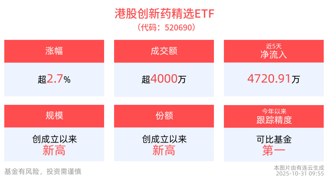 创新药概念强劲反弹,港股创新药精选ETF(520690)一度涨近3%,盘中交投活跃