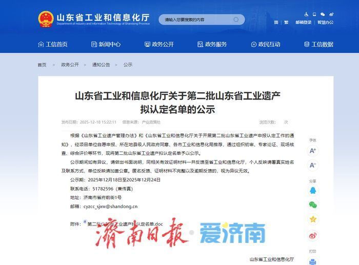 山东省第二批工业遗产认定公示 - 山东省工业和信息化厅于2025年12月18日公示了第二批省级工业遗产拟认定名单[1] - 省级工业遗产是指在山东省工业长期发展进程中形成,具有较高历史、科技、社会和艺术价值,且保存和管理状况较好的工业遗存[1] - 认定程序包括项目单位自愿申报、所在地县级政府同意、市级工信局推荐,并通过初审、专家论证、现场核查和综合评价等环节[2] - 公示期为2025年12月18日至2025年12月24日,期间可向省工信厅反馈异议[2] 济南市入选遗产详情 - 济南市有两处工业遗产入选,分别为山东朝阳修配厂和东阿镇福牌阿胶[1] - 山东朝阳修配厂的核心物项包括建于20世纪60年代的地下油库、水塔、锅炉房、电气焊车间、传达室、电螺车间、木工房、办公楼、塑压车间、冲压车间、楼晨修理车间、半成品车间、玻漆车间、组装车间、加工车间、仓库、银压车间、电工室、配电室、柴油发电机组室、组装车间、绘图室、五金库、广播室等[4] - 东阿镇福牌阿胶的核心物项包括东珂古城民国时期阿胶作坊旧址、福牌阿胶1950年旧址厂房、1958年的顾料蟾制车间、20世纪70年代的酿胶糖、科研生产糖、办公防检糖、水塔、20世纪80年代的宿舍糖、20世纪90年代的铜炉房[4] - 东阿镇福牌阿胶的非物质及档案类核心物项包括20世纪50-60年代的木质铁质水桶、熬胶锅、打沫刀、打沫勺、荒糖、萝、切胶刀,20世纪60-70年代的半目动切胶机,20世纪70-80年代的切胶机、蒸球化皮机,20世纪80年代的写字台等办公用具,20世纪80-90年代的熬胶锅,以及传统熬胶照片、商标注册证、《中国药学大辞典》、《中国阿胶》、《平阴县志阿胶志》等档案资料,《走遍中国》、《物产记》等视频[4] 工业遗产核心物项定义 - 工业遗产核心物项是代表其主特特征的物质遗存和非物质遗存[1] - 物质遗存包括厂房、车间、作坊、矿区等生产储运设施,与工业相关的管理和科研场所、其他生活服务设施及构筑物,以及机器设备、生产工具、办公用具、产品、档案等[1] - 非物质遗存包括生产工艺、规章制度、企业文化、工业精神等[1]