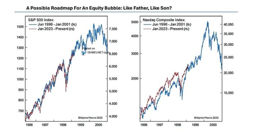 市场表现与近期动态 - 本周五美股全线崩盘,纳斯达克指数下跌超过3%,创下近半年最差单日表现 [1] - 市场可能迎来强劲上涨但同时也进入牛市最后阶段,涨幅会预先集中兑现随后将出现剧烈逆转 [1] - 当前市场心理变得脆弱,涨势已脱离盈利或利率等基本面支撑,纯粹由价格上涨本身驱动 [1] 历史相似性与市场阶段特征 - 当前市场环境与1999年互联网泡沫时期存在惊人相似之处,牛市的最后一年往往产生最可观收益但波动加剧 [2] - 1999年的核心故事是互联网,2025年的核心故事是人工智能,两者都带来重塑产业和引爆生产力的想象空间 [2] - 投资者因"害怕错过"而涌入市场,推动思科等公司市盈率超过100倍,当前AI叙事正驱动同样行为 [2] 市场支撑因素与潜在风险 - 充裕的流动性、庞大的财政赤字和全球央行降息为牛市提供支撑,但这些因素也是造成市场不稳定的根源 [4] - 当所有资产类别都创下历史新高并高度相关时,一次逆转可能引发连锁反应 [4] - "巴菲特指标"(市场总市值与GDP之比)已突破200%,超过历史上所有极端水平,暗示股市与实体经济严重脱节 [5] 市场心理与共识风险 - 当所有投资者都预期价格继续走高时,单边押注使市场对任何利空消息都异常敏感,可能引发不成比例的剧烈反应 [7] - 投资大师Bob Farrell指出:"当所有专家和预测都一致时,别的事情即将发生" [7] - 投资者买入只是因为价格上涨,这种行为"从来没有好结果" [5] 市场反常模式分析 - 市场进入"坏消息就是好消息"的危险模式,疲软经济数据反而刺激股市上涨,因为投资者押注美联储将放松货币政策 [1][8] - 该模式在过去三次主要市场顶部出现前以及2011年和2015年的市场顶部之前都曾出现 [8] - 这种机制可能持续数月市场才会真正迎来回调,但在过去二十年中也曾在牛市中期出现 [8][9]