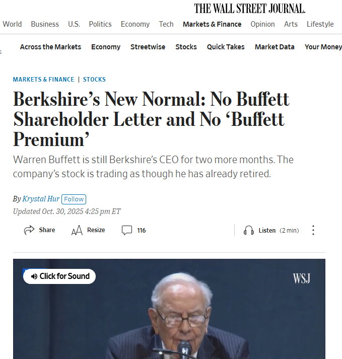 后巴菲特时代启幕,伯克希尔告别“溢价”迎接新常态