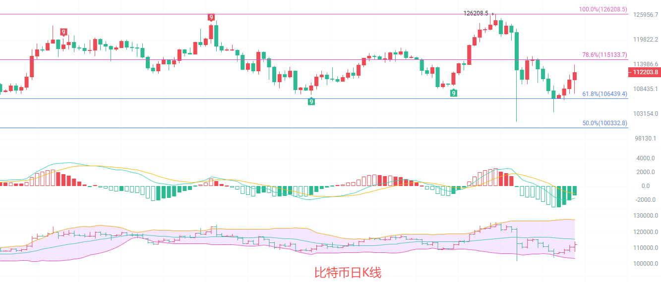 比特币行情分析 - 比特币现价为112,200,发稿前最高触及113,940,最低下探至107,400,日内波动空间超过5,000点 [1][3] - 日K线呈现V型反转形态,走出四连阳的强势多头格局,下一波阻力位关注115,100,布林带中轨阻力位于115,400 [3] - 四小时K线曾试探0.5阻力位113,865未果,回落至黄金分割0.618支撑位110,950附近横盘蓄力 [4] 技术指标信号 - 日线级别MACD缩量减少,DIF和DEA指标线出现收缩 [3] - 四小时级别MACD连续放量增筹,DIF和DEA已向上突破0轴线,并且一度突破布林带上轨113,000 [4] 交易策略建议 - 北上做多试仓点位于107,000至106,500区间,防守位设于106,000,止损500点,目标看向107,500至109,000 [5] - 南下做空试仓点位于114,000至114,500区间,防守位设于115,000,止损500点,目标看向114,000至112,500 [5] - 建议在关键压力位和支撑位被突破时严格执行止损,避免抗单 [5]