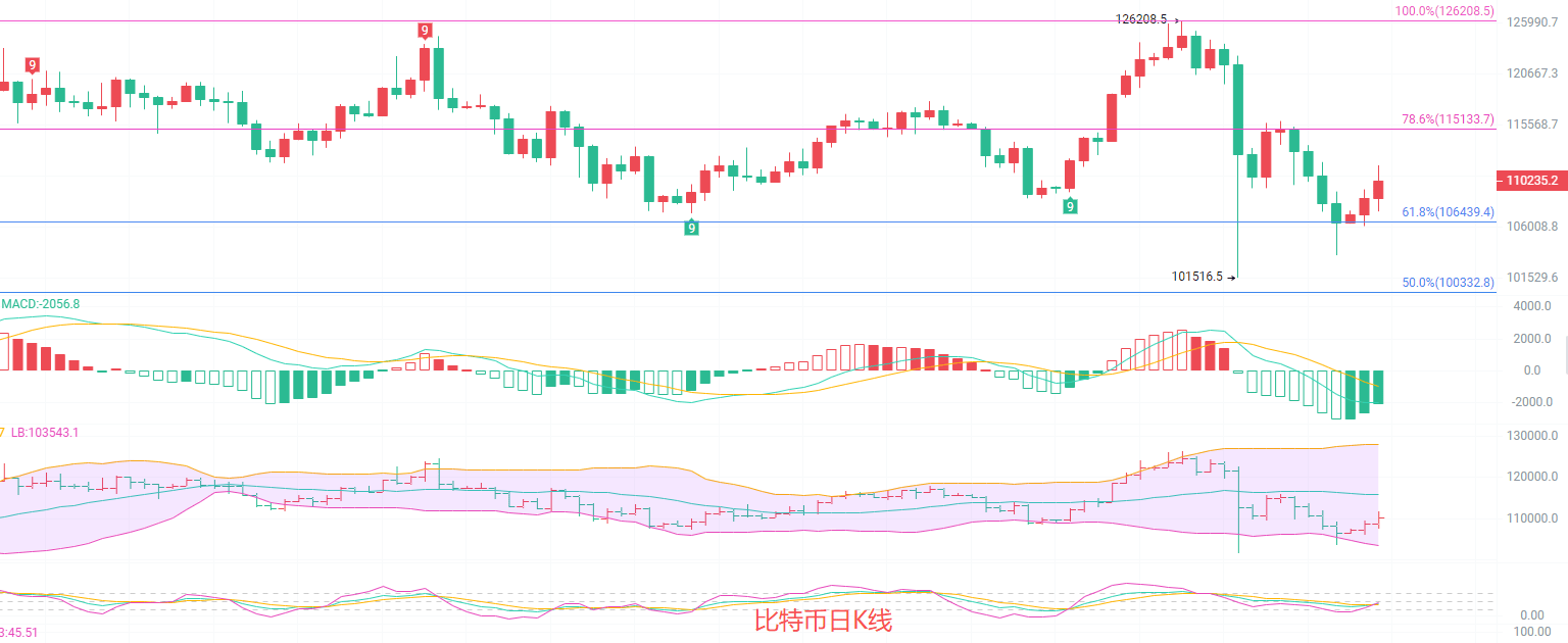 比特币当前行情分析 - 比特币现价为110,000美元,在110,950美元(61.8%斐波那契回撤位)和112,000美元(EMA120均线)处面临强劲阻力 [1][3] - 日K线最高触及111,650美元,最低下探107,400美元,出现三连阳但顶部压力显著 [3] - 四小时K线显示双顶十字星看空形态,技术性回落可能性增加,布林带上轨111,400美元形成压制 [5] 关键技术指标信号 - 日线级别EMA趋势指标呈现空头排列,三线死叉,整体趋势偏空,关键临界点为112,000美元 [3] - 日线MACD指标缩量减少,K线脱离布林带下轨后,中轨阻力位于115,750美元 [3] - 四小时级别MACD放量减少,DIF和DEA线分化明显,布林带中轨108,000美元成为关键支撑 [5] 短期交易策略建议 - 北上(做多)试仓区间为108,000美元至108,500美元,止损设在107,500美元,目标看向109,000美元至110,500美元 [5] - 南下(做空)试仓区间为111,000美元至111,500美元,止损设在112,000美元,目标看向108,500美元至110,500美元 [5] - 建议交易时设置止损,关注关键支撑和压力位的突破情况,以小损大赚为目标 [5]