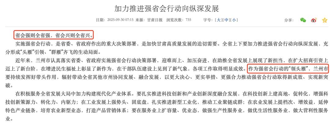 文章核心观点 - 多个省份正积极推行“强省会”战略,旨在通过提升省会城市的经济实力和辐射带动能力,以促进全省的整体发展 [1][2][4][6] 甘肃省“强省会”行动 - 甘肃省委省政府召开推进会,明确提出“以省会强带动全省强”,要求兰州市发挥“领头雁”作用,辐射带动省内协同发展 [2] - 推行该战略的背景是甘肃省经济总量偏弱,2024年全省GDP为1.3万亿元,排名全国第27位,省会兰州GDP为3742亿元,在全国排名靠后 [4] - 兰州的经济首位度(GDP占全省比重)为28.8%,在27个省会城市中排名第10位 [7][8] 四川省支持成都做优做强 - 四川省印发文件,明确支持成都持续做大经济总量、做强核心竞争力,目标是在“十五五”时期末使成都经济总量超过3.2万亿元 [6] - 成都作为超大城市,其经济总量占全省约三分之一(36.3%),为四川在2023年GDP超过河南、跃升为全国第五经济大省提供了重要支撑 [6][7] - 2024年成都GDP达2.35万亿元,稳居全国城市第七位,并以商业活力和文旅魅力著称 [6] 山东省“强省会”战略 - 山东省提出“省会强,则山东强”的工作要求,并自2021年起连续多年在政府工作报告中强化“强省会”战略部署 [6] - 2024年济南市GDP已突破1.3万亿元,但其经济首位度仅为13.7%,在全国省会城市中排名倒数第二,与山东省全国第三的经济总量不匹配 [6][7][8] - 山东省作为经济大省,目前尚无城市GDP进入全国十强,因此发展强省会的需求迫切 [6] 省会城市经济首位度分析 - 经济首位度最高的省会城市是银川,GDP占宁夏自治区比重达53.4%,长春以53.1%的占比紧随其后 [7][9] - 全国有8个省会城市的首位度超过三分之一(33%),包括银川、长春、西宁、西安、哈尔滨、成都、拉萨、武汉 [9] - 经济越发达的省份,其省会首位度普遍相对较低,东部地区仅海口首位度超过30% [9] - 广州作为第一经济大省广东的省会,首位度为21.9%,近年呈下降趋势,引发关于广东是否需要启动“强省会”战略的讨论 [9]