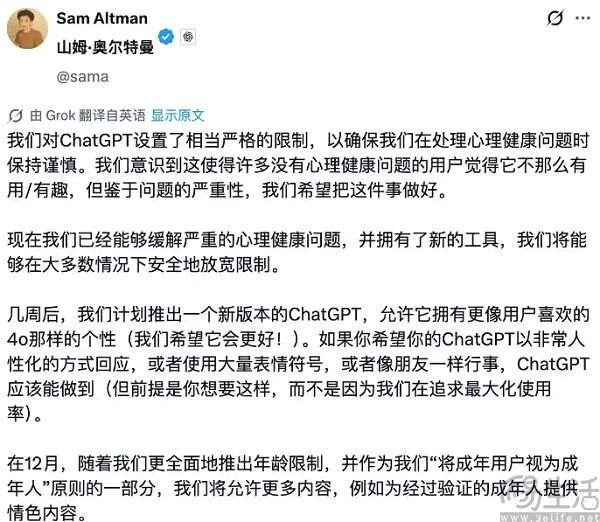 “把成年人当成年人”,ChatGPT也开始擦边