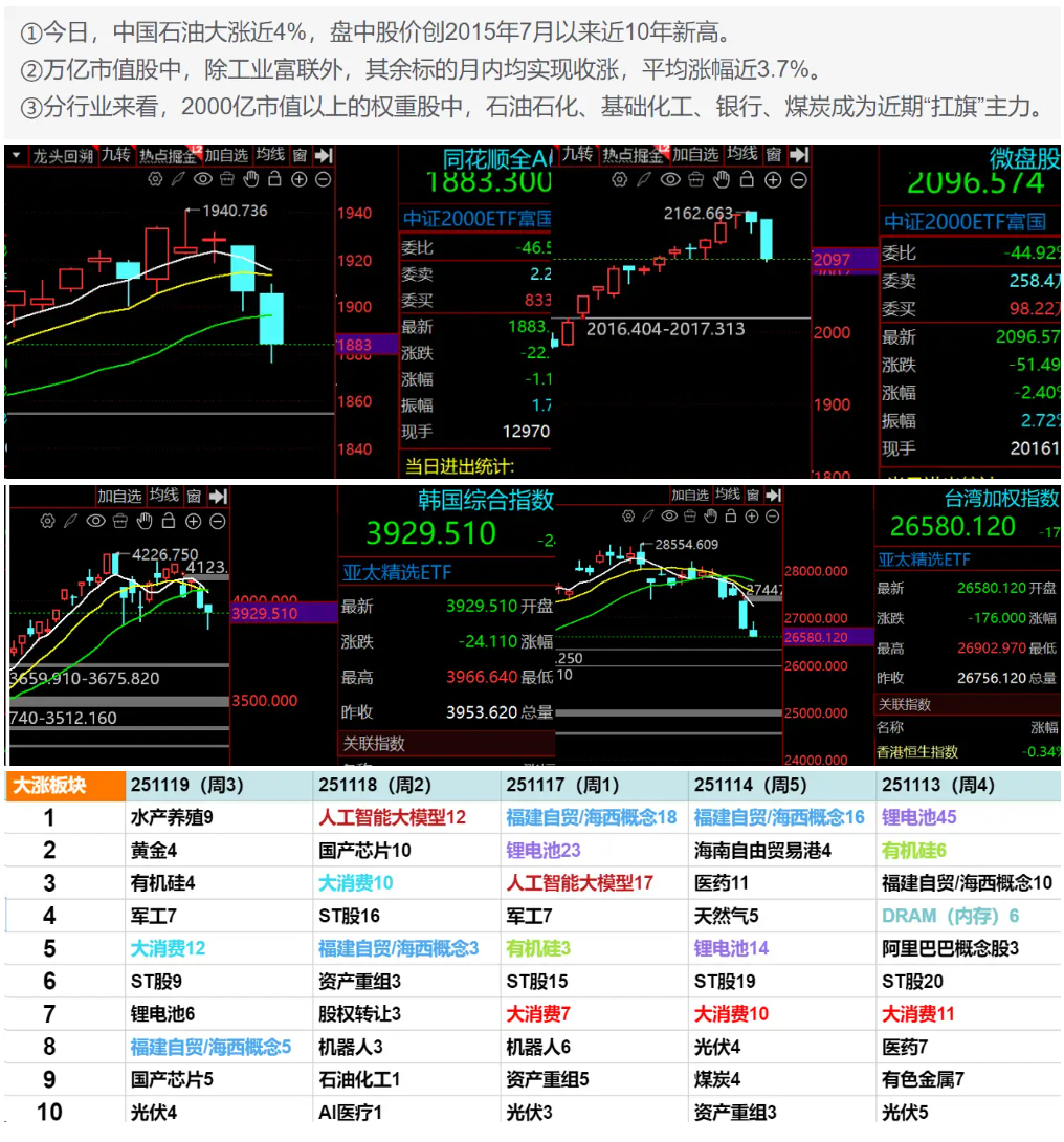 11月19日,今日三大指数全天呈现缩量企稳行情,沪指、创业板指均微涨报收,两市成交额1.73万亿,较上一个交易日缩量2002亿,创出月内地 量水平,连续2日超4100股飘绿。今日微盘股指数全天大部分时间处于单边下杀行情,今日接连跌穿5、10日均线,并创出3个多月来的单日最大 跌幅。 ...
