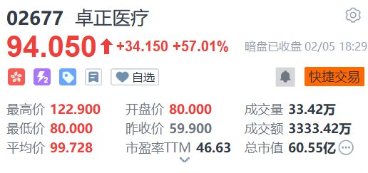 新股暗盘|卓正医疗暗盘收涨57.01% 一手赚逾1700港元