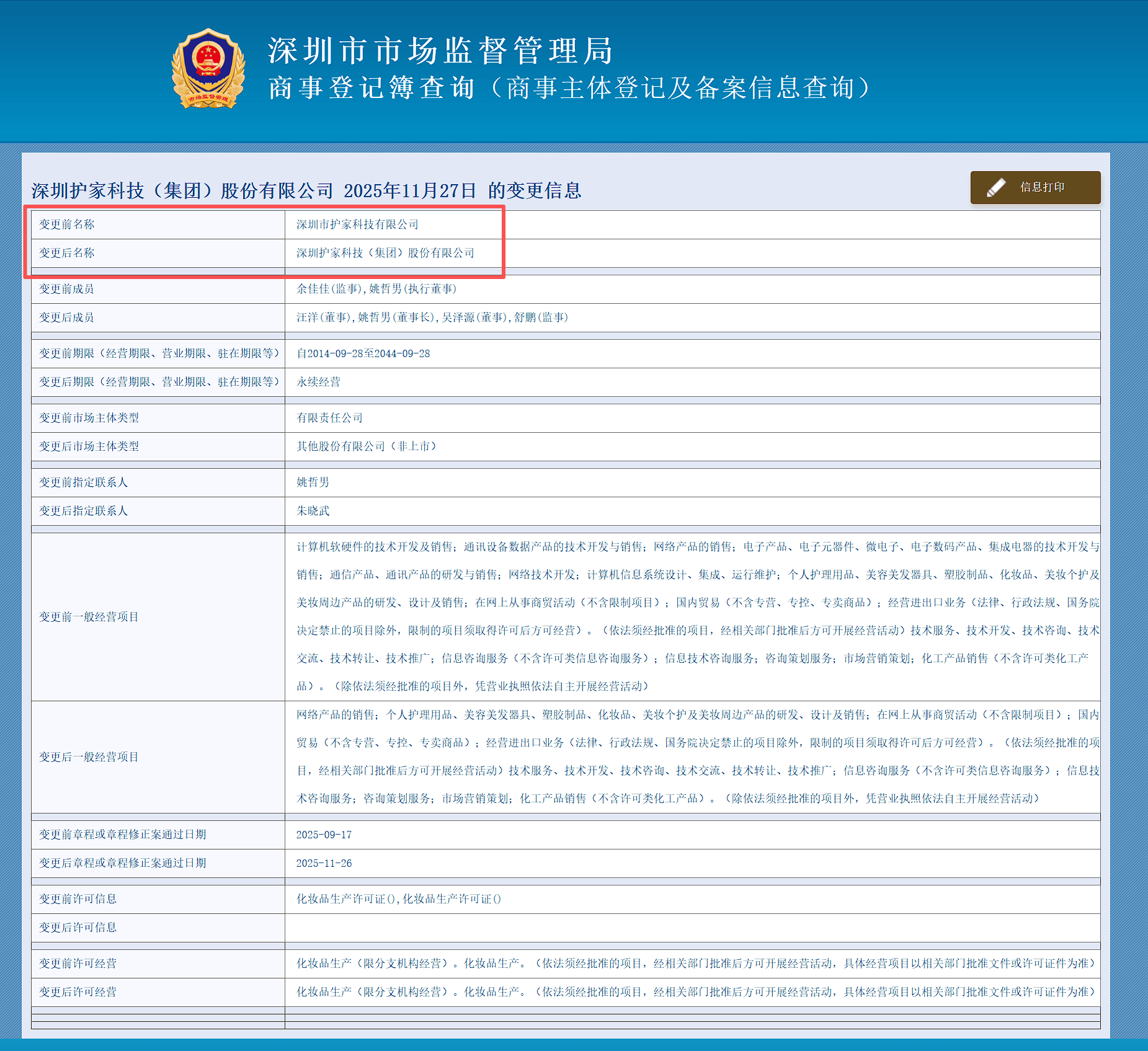 近日,有证券业内人士传出消息,称头部国货新锐美妆品牌HBN母公司深圳护家科技(集团)股份有限公司(以下简称"护家科技")开始筹备上市工作,此 次上市计划的辅导机构大概率为中金证券,双方目前正就相关事宜进行洽谈。 这一传闻一经传出,迅速引发投资界和化妆品行业的关注,作为近年来崛起的国货代表,HBN若正式启动上市计划,将再度佐证国产美妆品牌在资本市场 升温的行业风向。 | 变更前许可信息 | 化妆品生产许可证(),化妆品生产许可证() | | --- | --- | | 变更后许可信息 | | | 变更前许可经营 | 化妆品生产(限分支机构经营)。化妆品生产。(依法须经批准的项目,经相关 | | 变更后许可经营 | 化妆品生产(限分支机构经营)。化妆品生产。(依法须经批准的项目,经相关 | 然而,有媒体消息,另一知情人士指出,HBN开始上市前早期准备应属属实,只是因处于初步阶段,加上信息保密和变数考量,企业通常不会过早公开。 从近年国货美妆的发展趋向来看,HBN未来走向IPO征途,进一步拥抱资本市场,几乎是必然的趋势。 01. 基于A醇奠定科学品牌胜势 延伸品类巩固品牌地位 资料显示,HBN创始人为姚哲男,现任品 ...
