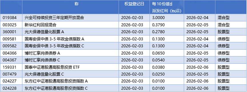 市场表现与资金动向 - 2月初国际原油剧烈震荡,油气主题LOF遭资金爆炒,溢价率一度突破20% [1] - 易方达、广发、华安、嘉实等公募相继公告停牌或限购,最高申购额降至100元 [1] - 2月3日A股三大股指早盘冲高回落后强势拉升,沪指涨1.29%报4067.74点,深成指涨2.19%报14127.11点,创业板指涨1.86%报3324.89点,科创50指数涨1.39%报1471.07点 [1] - 2月3日沪深两市成交额达2.54万亿元,全市场超4800只个股上涨 [1] 基金发行与分红 - 2月3日新发基金共有3只,主要为FOF和混合型基金,其中博道星航混合募集目标金额达30.00亿元 [2] - 2月3日基金分红11只,多为股票型,派发红利最多的基金是兴全可持续投资三年定期开放混合,每10份基金份额派发红利3.0000元 [2] - 1月发行市场活跃,48只基金提前结募,其中16只为“日光基” [2] - 提前结募产品集中锁定成长性赛道,有色金属主题达8只,芯片、新能源电池亦获资金抢筹 [2] - 公募公告称提前结募是为尽早建仓、锁定窗口期,以维护持有人利益并抢占春季行情先手 [2] 机构研究与评级 - 截至2月3日,1月以来56家机构共给出1221次“买入型”评级,覆盖653只个股 [2] - 其中,40只个股获至少5家机构推荐,中国中免、贵州茅台分别以15家、14家评级居前 [2] - 另有219只个股首次进入机构评级池,显示年初调研活跃度显著提升 [2]
