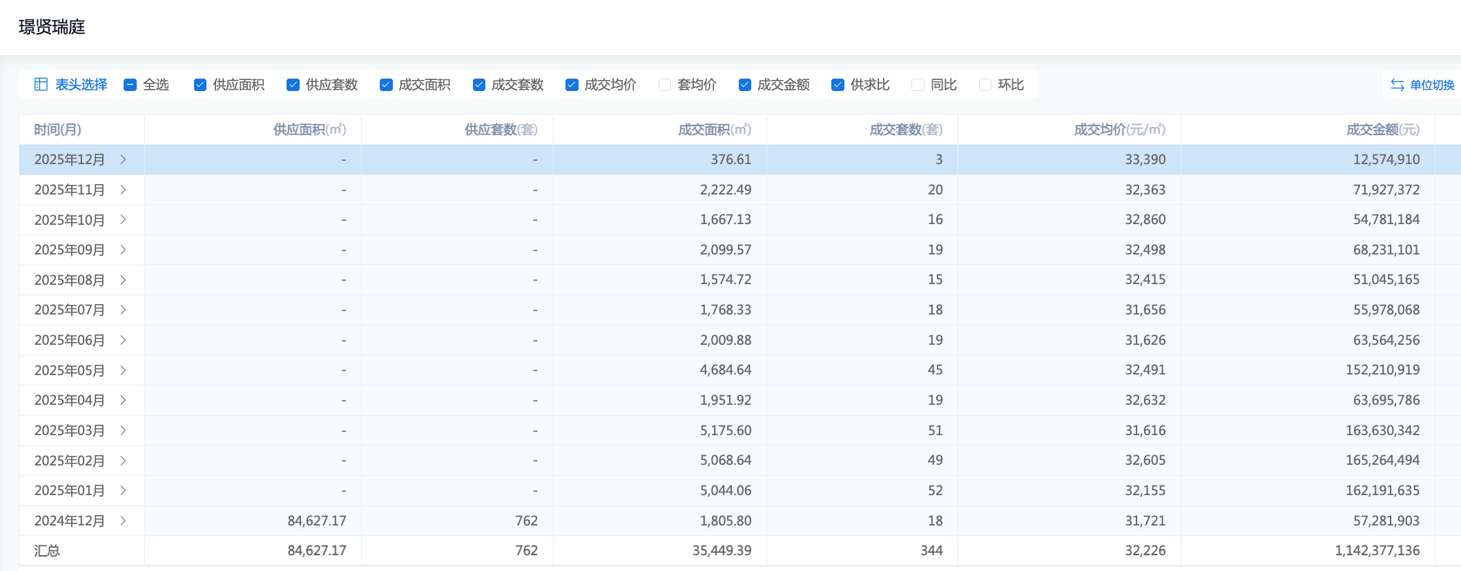 项目销售业绩与市场地位 - 2025年,北京建工璟贤瑞庭完成网签326套,成交总额10.85亿元,位列房山单盘成交榜第4位 [1] - 自2024年12月开盘至数据统计时,项目累计网签344套,全盘去化率约45% [1] - 项目成交均价为3.22万元/平方米,约为销售指导价4.5万元/平方米的72折 [2] - 有24套房源以低于3万元/平方米的价格成交 [3] 项目成交与供应数据 - 项目自2024年12月开盘以来,截至数据统计时,总成交面积为35,449.39平方米 [2][4] - 2024年12月项目供应面积为84,627.17平方米,供应套数为762套 [2][6] - 项目成交面积最多的月份为2025年3月,达5,175.60平方米,其次为2025年2月的5,068.64平方米和2025年1月的5,044.06平方米 [2] 项目价格与成本分析 - 项目拿地楼面价约为1.82万元/平方米,与成交均价3.22万元/平方米相比,房地价差约为1.4万元/平方米 [3] - 按当前成交均价3.2万元/平方米计算,项目总货值约为27亿元 [7] - 项目拿地成本为16.44亿元,施工总包成本为6.58亿元,剩余约4亿元需覆盖各项税费及管理、财务、营销等费用,利润空间有限 [7] 项目产品与去化结构 - 项目规划12栋8-15层小高层,主力户型为84-143平方米的三居、四居 [6] - 成交面积段最多的房源集中在90-110平方米,该面积段供应228套,网签159套,去化率近70% [5] - 110-130平方米面积段供应最多,为386套,但仅成交117套,去化率约30% [4] - 从单价段看,成交主要集中在30,000-40,000元/平方米区间,成交面积为33,140平方米 [4] 项目背景与开发商信息 - 项目所在地块由北京城乡房屋建设开发有限责任公司于2024年8月1日以16.44亿元摘得 [32] - 项目开发主体为北京诚开京铖房地产开发有限责任公司,成立于2024年7月24日,注册资本1000万元,由北京城乡房屋建设开发有限责任公司100%持股,隶属于市管国企北京建工集团 [32] - 项目公司法定代表人、董事为倪景雷,其同时也是城乡开发公司党委委员、经理助理 [32] - 拿地一年半后,项目网签金额总计11.42亿元,覆盖了近70%的拿地成本 [32]