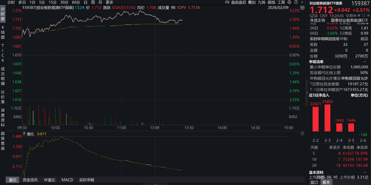 政策与产业共振驱动,创业板新能源ETF国泰(159387)大涨超3%
