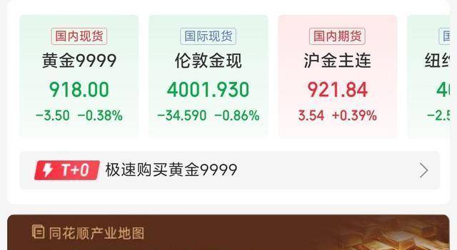 再说地缘政治,全球哪里有火星四溅,资本就知道往黄金跑,回头看看2022年俄乌冲突初期,金价短时间蹿了大约10%,那不是没来由的恐慌性买 盘;下周任何一个地区的紧张升级都会让金价来个即刻反映,反过来要是局势突然和缓,金价也会应声下行,都是资金的短期避险和撤退。 实物需求方面,别只看纸上的数字,印度过节和我们过年那几拨实物买盘是真金白银在动,需求季节性增长对价格有实在推力;矿产供应增量有 限,长期看供给端扛不住明显放松就是金价向上有天然支撑,短期内哪怕一条供应链消息也能挑起波澜。 | 国内现货 | 国际现货 | 国内期货 | 医 | | --- | --- | --- | --- | | 黄金9999 | 伦敦金现 | 沪金主连 | 细丝 | | 918.00 | 4001.930 | 921.84 | ৰ | | -3.50 -0.38% | -34.590 -0.86% | 3.54 +0.39% | -2.5 | | 4 T+0 | 极速购买黄金9999 | | | | 目 同花顺产业地图 | | | | 技术面也是实打实的看点,国内918元这个区间过去几回都有支撑,国际上4001.93美元附近也是历史压力 ...