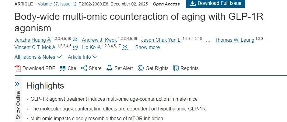 香港中文大学重磅发现:GLP-1不只是减肥药,它可能正在“系统性逆转衰老”