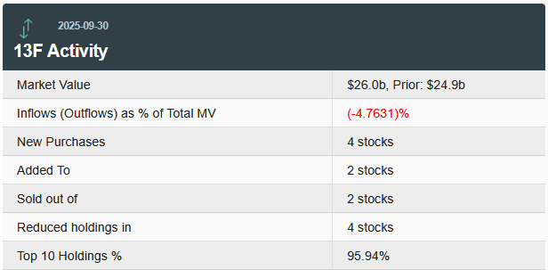 投资组合规模与结构 - 截至二季度末总管理规模达248亿美元 环比增长14.81% [1][2] - 前十大持仓占比36.13% 持仓集中度较高 [2] - 组合调整活跃度显著 新增85只个股 清仓164只个股 [1] 重点增持领域 - 大幅增持英伟达723万股 持股数环比增长154% 持仓占比从1.43%升至4.61% [1][5][6] - 加仓微软90.56万股至172万股 持仓占比从1.41%升至3.44% [5][6] - 增持Alphabet 256万股至560万股 持仓占比从2.18%升至3.98% [5][6] - 增持Meta 38.1万股至80.7万股 持仓占比从1.14%升至2.4% [5][6] 新进持仓标的 - 新建仓芯片设计公司ARM 47.4万股 占比0.31% [1][6][7] - 新进Intuit 5.9万股(占比0.19%)、EQT 78.7万股(占比0.19%)、Lyft 247.9万股(占比0.16%) [6][7] - 新增Ulta Beauty超5.8万股 占总持仓0.11% [6] 减持与清仓操作 - 清仓阿里巴巴、拼多多、百度、京东等中概股 [1][8] - 减持亚马逊79.55万股 持仓占比从1.17%降至1.10% [8] - 减持AMD 40.89万股 持股占比从1.03%降至1.0% [9] - 减持Paypal近44.8万股 环比下降12% [9] ETF持仓调整 - 标普500 ETF(SPY)仍为第一大持仓 但减持73.2万股 占比从8.67%降至6.51% [1][3][5] - iShares核心标普500 ETF(IVV)增持13.45万股 占比微升至5.78% [3][5] - 黄金ETF持仓111万股保持不变 但占比从1.48%降至1.36% [4]