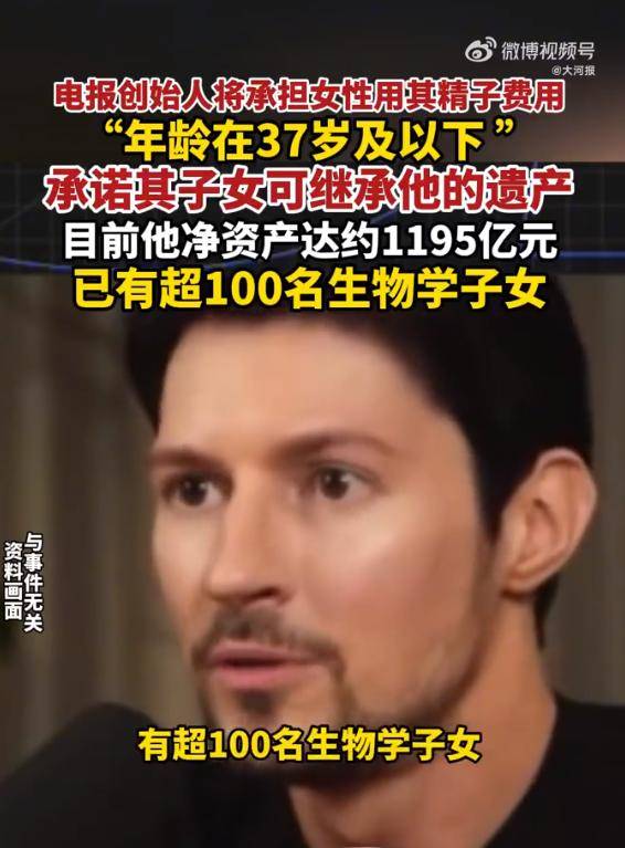 近日,41岁俄罗斯电报创始人兼CEO帕维尔·杜罗夫宣布,将为年龄在37岁及以下、希望使用其精子的 女性全额承担体外受精费用,并承诺其子女可继承他的遗产。杜罗夫目前净资产达170亿美元(约合人 民币1195亿元)。 杜罗夫已有六个自然生育的孩子,分别由三位不同女性所生。而自2010年开始捐精以来,他在12个国家 有超100名生物学子女。尽管他已不再捐精,但其精子仍冷冻在一个生殖诊所。去年7月,杜罗夫在电报 上发帖称:"这些精子仍可供使用。" 去年一次采访中,杜罗夫还提到,如果证明是其生物学子女,"他们很可能有权平等继承我的部分遗 产,大概在我去世30年后。"他宣布将公开自己的DNA信息,以帮助其生物学子女找到彼此。 来源:大河报 ...