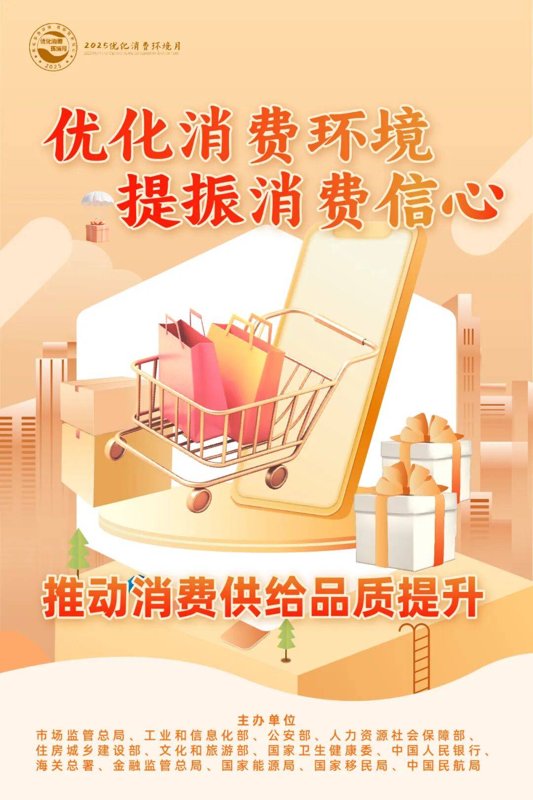 为进一步营造全社会共同参与优化消费环境的良好社会氛围,现发布2025年全国"优化消费环境月"活动海报,供广大企事业单位、社会团体、新闻媒体等 在"优化消费环境月"活动中宣传使用。 于办里位 市 场 监 管 总 局 、 工 业 和 信 息 化 部 、 公 安 部 、 人 力 资 源 社 会 保 障 部 、 住 房 城 乡 建 设 部 、 文 化 和 旅 游 部 、 国 家 卫 生 健 康 委 、 中 国 人 民 银 行 海 关 总 署 、 金 融 监 管 总 局 、 国 家 能 源 局 、 国 家 移 民 局 、 中 国 民 航 2025年11月,市场监管总局等13个部门将联合开展全国"优化消费环境月"活动。今年全国"优化消费环境月"以"优化消费环境 提振消费信心"为主题,落实 《提振消费专项行动方案》部署,扎实推进优化消费环境三年行动,助力提振消费,构建"诚信、公平、便捷、安全"的消费环境。 市场 监 管 总 局 、 工 业 和 信 息 化 部 、 公 安 部 、 人 力 资 源 社 会 保 障 部 、 住 房 城 乡 建 设 部 、 文 化 和 旅 游 部、 国 家卫 生 健 康 委、 中 国 人 民 银 ...