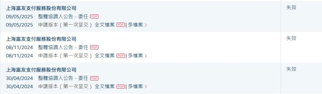 富友支付港股IPO招股书失效