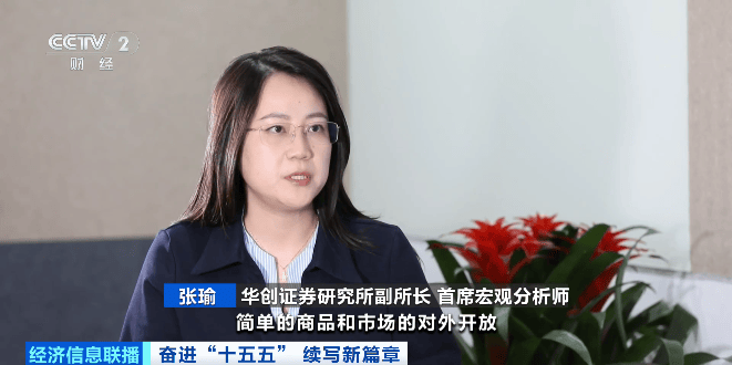 华创证券研究所副所长 首席宏观分析师 张瑜:我们从过去一二十年简单的商品和市场对外开放,已经 进入制度开放,所以我们是对标全球最高标准的经贸规则,去做整个制度开放的,那可能DEPA(《数 字经济伙伴关系协定》)、CPTPP(《全面与进步跨太平洋伙伴关系协定》)将来都是要重点推进的国 际制度合作的标本,其中包括劳动保护、环境标准、产业补贴,包括一些政策,都会跟整个国际的最高 标准衔接,这才是更高意义上"十五五"开放性质的变化。 在"制度型开放"框架下,"十五五"期间我国对外开放的路径逐步清晰。张瑜认为,未来开放将呈现两大 新特征。 (央视财经《经济信息联播》)面对当前复杂多变的外部环境,中国应该如何进一步走好开放之路?华 创证券研究所副所长张瑜在接受采访时表示,"十五五"期间,我国对外开放将从商品和市场开放进一步 迈向"制度型开放",形成更加系统、高标准的国际合作新格局。 华创证券研究所副所长 首席宏观分析师 张瑜:我觉得中国整个大的出口,包括对外合作,在未来几 年,空间依然非常巨大,而且整个韧性会非常强。中国是全球最大的生产、制造大国。只要海外需求是 稳步向上的,不管是新兴市场国家的初级城镇化,有一个产业周期 ...