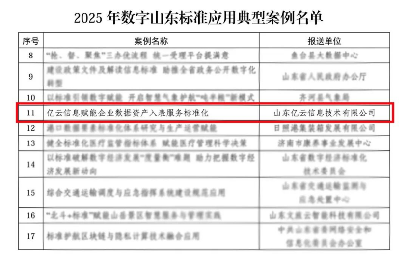 亿云信息案例成功入选2025年数字山东标准应用典型案例