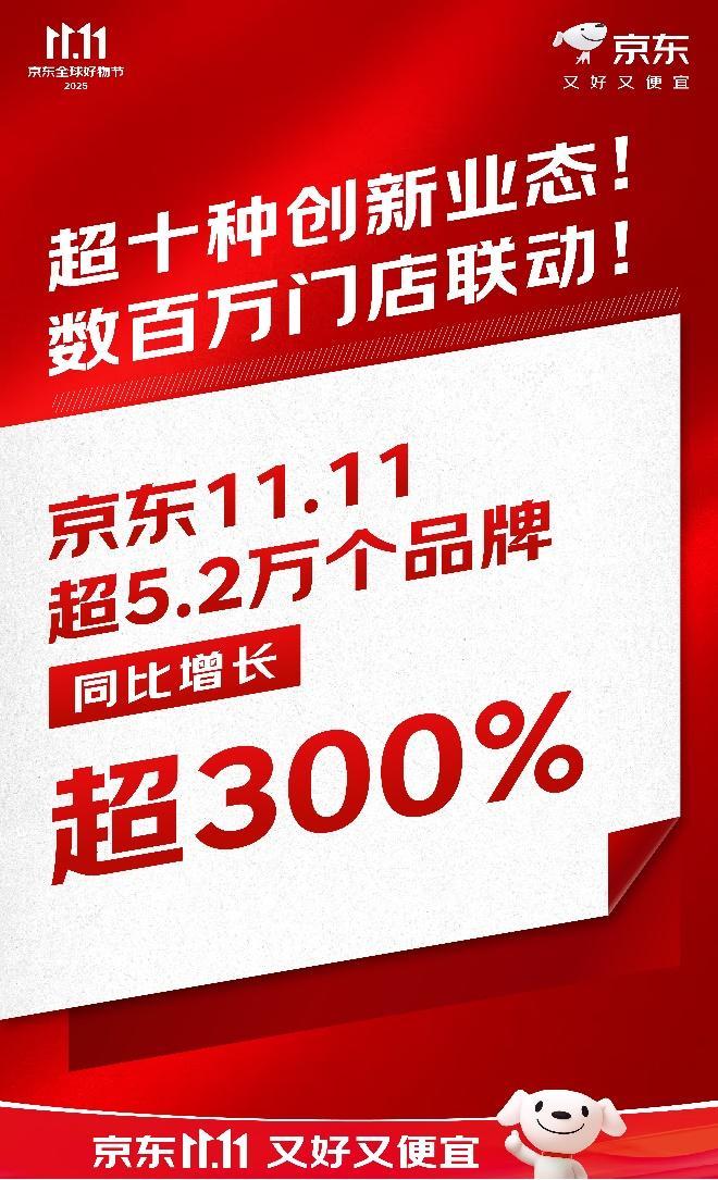 超十种创新业态!数百万门店联动!京东11.11超5.2万个品牌成交额同比增长超300%