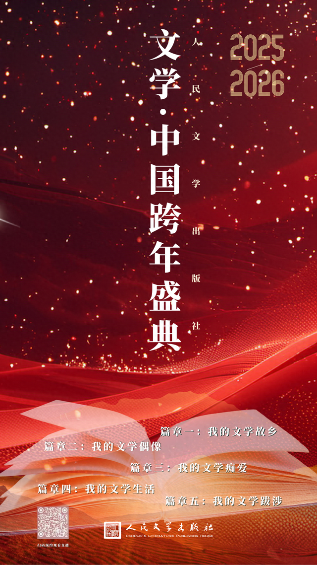 转自:北京日报客户端 在"我的文学偶像"篇章中,听康震讲述苏东坡风雨不息的精神世界,文铮解读但丁和他的中国之旅。让 那些伟大的名字,成为文学星空中永恒的坐标。 在"我的文学痴爱"篇章中,当诗意在人间烟火中生长,文学便成为最纯粹的信仰,让我们聆听"外卖诗 人"王计兵"在人间捡拾诗意",跟随陈慧、马慧娟、谈波走进菜场、田间与工厂,看文学如何在寻常的 日子里,绽放出生命的微光。 又是一年辞旧迎新时。当城市渐次亮起节日的灯火,总有一束光,来自文学的深处,来自我们共同仰望 的精神星空。 12月31日19:30至00:15,由人民文学出版社主办的2026"文学·中国"跨年盛典,将于中国国 际出版交流中心B1层光华堂隆重举行,20位文学名家与文化名人将齐聚一堂,以五大篇章串联起一场 跨越时空的文学之旅。北京日报客户端、北京日报艺绽视频号将进行全程直播。 在"我的文学故乡"篇章中,刘震云、梁晓声、陈彦、叶兆言、索南才让将带领我们重返他们的创作原乡 ——孕育出智慧与世情的中原厚土、风雪凛冽的东北大地、钟灵毓秀的秦岭南麓、文脉千年的秦淮河 畔,以及苍茫辽阔的祁连山下。冯骥才、贾平凹、马未都也将通过影像,讲述一条街,一座城、一片土 ...