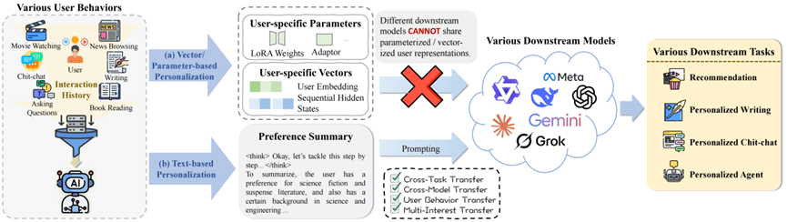 那么,大模型时代应该怎么做个性化呢?一方面,传统的推荐系统和对话模型往往依赖ID Embedding或特定参数(如 LoRA)来表示用户偏好。这种不可解释、难以迁移的"黑盒"范式,正在成为桎梏。另一方面,大模型强大的推理能力和生 成能力为打破传统范式的局限性带来了机会,让个性化可以从"黑盒"走向"白盒"。 近日,蚂蚁和东北大学研究团队(后简称"团队")推出AlignXplore+,在大模型个性化上实现了一种文本化用户建模的新范 式,让复杂的用户偏好可以被人和机器同时理解,同时具备很好的扩展性和迁移性。 怎样做一个爆款大模型应用? 这恐怕是2026年AI开发者们都在关注的问题。当算力和性能不再是唯一的护城河,"爆款"意味着大模型要能精准地"抓 住"每一名具体的用户,而个性化正是其中的关键技术之一。 蚂蚁AlignXplore+团队 投稿 量子位 | 公众号 QbitAI 为什么是"文本"? △图1 个性化领域从基于向量/参数的用户表示向基于文本的用户表示的范式转变。 (a) 传统方法生成的用户专属参数和向量与训练模型紧密耦合,因此无法迁移。 (b) 团队开创了一种基于文本的范式,该范式能推断出与模型和任务无关的 ...