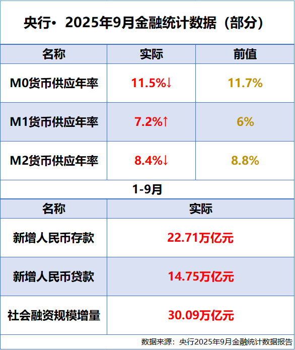 央行9月重要金融数据一览:M1-M2剪刀差继续收窄,M2同比增长8.4%