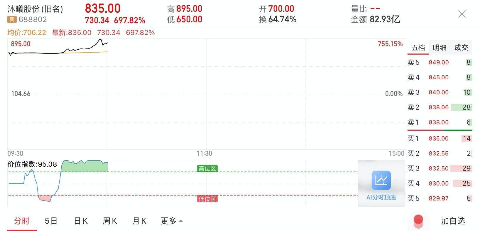 继摩尔线程后,"GPU芯片四小龙"之一的沐曦股份也成功登陆A股市场。12月17日,沐曦股份上市首日开盘报700元/股,截至发稿股价最高曾到895元/股, 总市值超3400亿元。 沐曦股份发行价104.66元/股,若投资者中一签并以700元/股的价格卖出,赚近30万元。若照此计算,沐曦股份超越摩尔线程,成为A股全面注册制以来最赚 钱新股。 若以截至发稿时曾达到的895元/股最高价计算,投资者中一签并以高价卖出,可赚39.52万元。 站在沐曦股份背后的投资者们也是赚得"盆满钵满"。 沐曦股份上市前,经历10余轮融资,汇聚了包括红杉中国、经纬创投、国寿资本等在内的超百家机构。其中"期货大佬"葛卫东以及其控制的混沌投资也重仓 沐曦股份。招股书显示,葛卫东、混沌投资分别持有沐曦股份1433.82万股、1259.97万股,持股比例分别为3.98%和3.5%,为公司第五、第六大股东。 据深蓝财经估算,葛卫东2025年以个人名义的两次增资成本为8亿元,加上其控制的混沌投资的多次增资及受让股份,合计约12亿元。 如今,随着沐曦股份上市后股价飙至800元/股以上,葛卫东以及混沌投资合计的持股市值已经超过215亿元,账面浮盈超20 ...