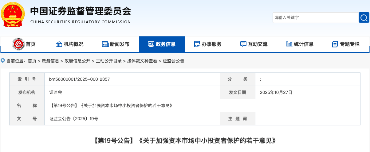 推动上市公司增强投资者回报。大力倡导上市公司采用"注销式回购"等方式回报投资者。多措并举引导上市公司在确保可持续发展的前提下实施一年多次分 红,增强分红的稳定性、持续性和可预期性。 全面优化融资融券监管制度。进一步加强融资融券业务监管,完善融资融券规则,提高融资融券业务透明度和公平性,切实加大投资者保护力度。进一步加 强程序化交易监管。加大对程序化交易报告的信息核查力度,完善异常交易监控标准,针对性强化交易监测监控,维护市场交易的公平性。 10月27日,证监会发布《关于加强资本市场中小投资者保护的若干意见》,自公布之日起施行。 意见提到,优化新股发行定价机制。推动形成鼓励长期持有的新股发行网下配售机制,研究试点对锁定比例更高、锁定期更长的网下投资者提高配售比例。 强化网下投资者分类评价管理,从严限制故意抬高、压低报价的询价机构参与首次公开发行证券网下询价配售,推动网下投资者合理报价。加大对投资价值 研究报告事后回溯自律监管力度,对承销机构报备的发行方案从严监管。督促承销机构出具投资价值研究报告时审慎作出盈利预测,充分进行风险提示,审 慎确定估值结论。禁止承销机构按照发行规模递增收取费用的比例,禁止保荐机构、会 ...