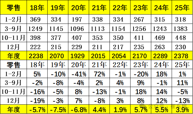 2025年车市走势回顾 - 2025年国内乘用车市场零售总量预计为2378万辆,同比增长3.9% [2] - 2025年市场走势呈现“前低中高后平”特征,1-2月零售318万辆同比增长1%,3-9月零售1383万辆同比增长11%,10-11月零售448万辆同比下降5%,12月预计零售230万辆同比下降13% [2][3] - 2025年1-11月累计零售2148万辆,同比增长5%,但11月单月零售222万辆,同比下降8%,环比下降1% [3] - 2025年新能源汽车零售渗透率达到53.4%,较2024年的47.6%提升6个百分点,11月单月渗透率高达59.3% [7] - 新能源汽车市场结构变化显著,纯电动车型零售同比增长9.2%,而增程式同比下降4.3%,插电混动同比下降2.8% [8] - 新势力车企表现强劲,2025年11月零售份额达到22.1%,同比增加5.9个百分点,2025年全年份额较2024年增长3.6个百分点 [11] - 纯电大三排SUV车型销量爆发,11月连续三个月超过增程、燃油和插混车型,位居细分市场榜首 [13] 市场竞争与产品趋势 - 行业竞争从价格战转向价值战,消费者购车决策更关注产品力、体验感和全生命周期服务 [6] - 市场呈现“油退电进”趋势,新能源汽车持续蚕食燃油车市场 [7] - 纯电动技术路线优势凸显,因技术突破、基础设施完善以及更好的操控体验和更低维保成本,市场份额持续提升,新势力车型中纯电动占比从去年11月的57.2%大幅提升至72.8% [8][9][12] - 自主品牌在新能源市场占据主导地位,2025年累计零售1405万辆,份额达74.6% [7] - 高端新能源车及大三排车型需求增长强劲,受益于多孩家庭占比上升带来的舒适性升级需求,预计大三排车型将进入长达十年的黄金增长期 [14][21] 2026年车市展望与预测 - 2026年将延续2025年政策基调,实施更加积极的财政政策和适度宽松的货币政策 [1][17] - 预计2026年1月车市将实现“开门红”正增长,主要受益于春节滞后(2月17日)的“特大年”因素及国家补贴提早实施 [15][16] - 预计2026年第一季度整体车市零售同比有望持平,但环比2025年第四季度将下降25% [1][17] - 预计2026年第一季度新能源汽车零售有望微增5%,但环比2025年第四季度将下降36% [1][17] - 2026年下半年走势预计将明显改善,尽管1-9月累计增速承压,但第四季度在以旧换新等政策支持下有望实现小幅正增长,全年目标为零增长或微幅正增长 [20] - 2026年乘用车厂家增长将主要依靠出口增量实现小幅正增长 [20] - 2026年新能源补贴政策预计将从定额补贴改为按比例补贴,此举将对市场结构产生影响,预计高端车型增长相对较强,而低价电动车补贴金额将剧烈下降 [22]