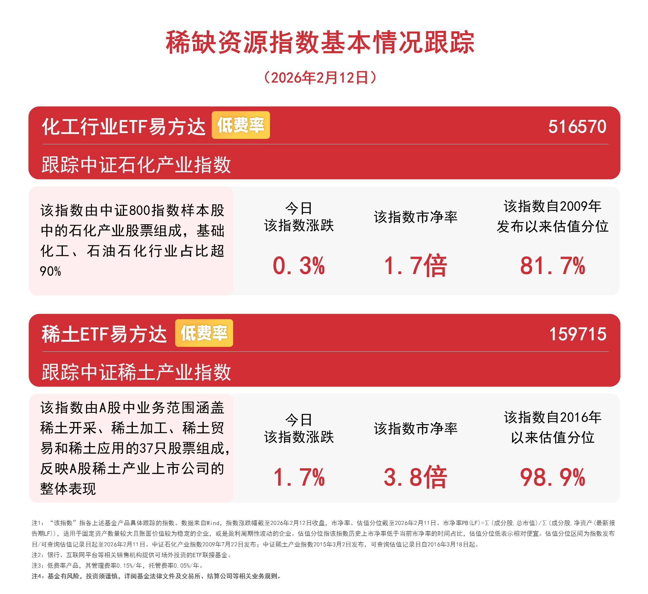 稀土、化工板块持续走强,稀土ETF易方达(159715)、化工行业ETF易方达(516570)聚焦板块龙头