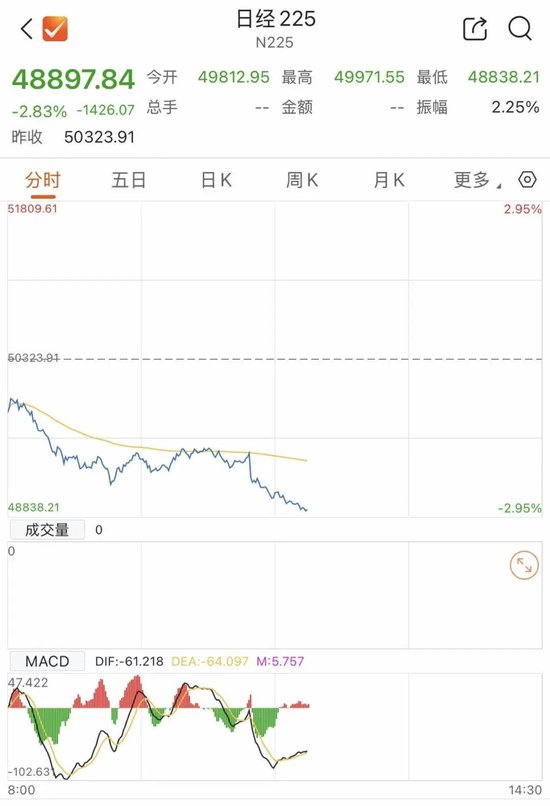 炒股就看金麒麟分析师研报,权威,专业,及时,全面,助您挖掘潜力主题机会! 北京时间11月18日,日本股市再度暴跌。截至发稿,日经225指数跌破49000点关口,跌超1400点,跌幅 2.83%。 据新华社报道,日本媒体和专家担忧日中关系恶化,进一步冲击本已面临下行压力的日本经济,导致四 季度经济再现负增长。瑞银证券高级分析师风早隆弘表示,从市场动向来看,投资者不仅担心中国游客 访日消费受到影响,还担心日本企业在中国的业务受到拖累。 除日本股市外,韩国股市18日也显著下挫。韩国综合指数截至发稿跌超3%。 | 野国 KUSPI < V | 巴 Q | | --- | --- | | KS11 | | | 3964.70 今开 4044.47 最高 4072.41 最低 3964.70 | | | -3.05% -124.55 总手 21.9万 金额 -- 振幅 2.63% | | | 昨收 4089.25 | | 作者:严晓菲 日元也延续弱势。欧元对日元汇率盘中再次升破180关口。日本共同社此前报道称,这是自1999年以来 日元首次跌落180区间,投资者对日本财政状况恶化的担忧导致日元被抛售。 消息面上,据新华社 ...