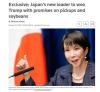 (文章来源:中国新闻网) 报道提到,特朗普计划10月底访日,这将是高市早苗就任首相后面对的首次重大首脑会晤。如何应对特 朗普以及其背后的关税政策等问题,将是对其政治能力、外交手腕的首场大考。 报道还称,高市早苗在21日的记者会上强调,"日美同盟是日本外交与安全政策的基石。"分析认为,此 次会晤若取得成功,将有助于巩固其初启的执政基础,也为日后推进区域安全政策争取美方支持。 关于采购计划与投资事项,日本政府发言人回应称"目前评论为时过早"。白宫方面暂未置评。 中新网10月22日电据路透社当地时间22日援引知情人士消息,日本新任首相高市早苗上任后,其政府正 敲定一项采购计划,拟于下周与美国总统特朗普的会晤时提交。报道称,该计划包括采购美国皮卡车、 大豆和天然气,以向特朗普政府示好。 图片来源:路透社报道截图 消息人士透露,高市早苗在此次会晤中将不承诺任何新的国防开支目标。目前,美国正持续向日本等盟 友施压,要求其"承担更多安全责任"。 ...