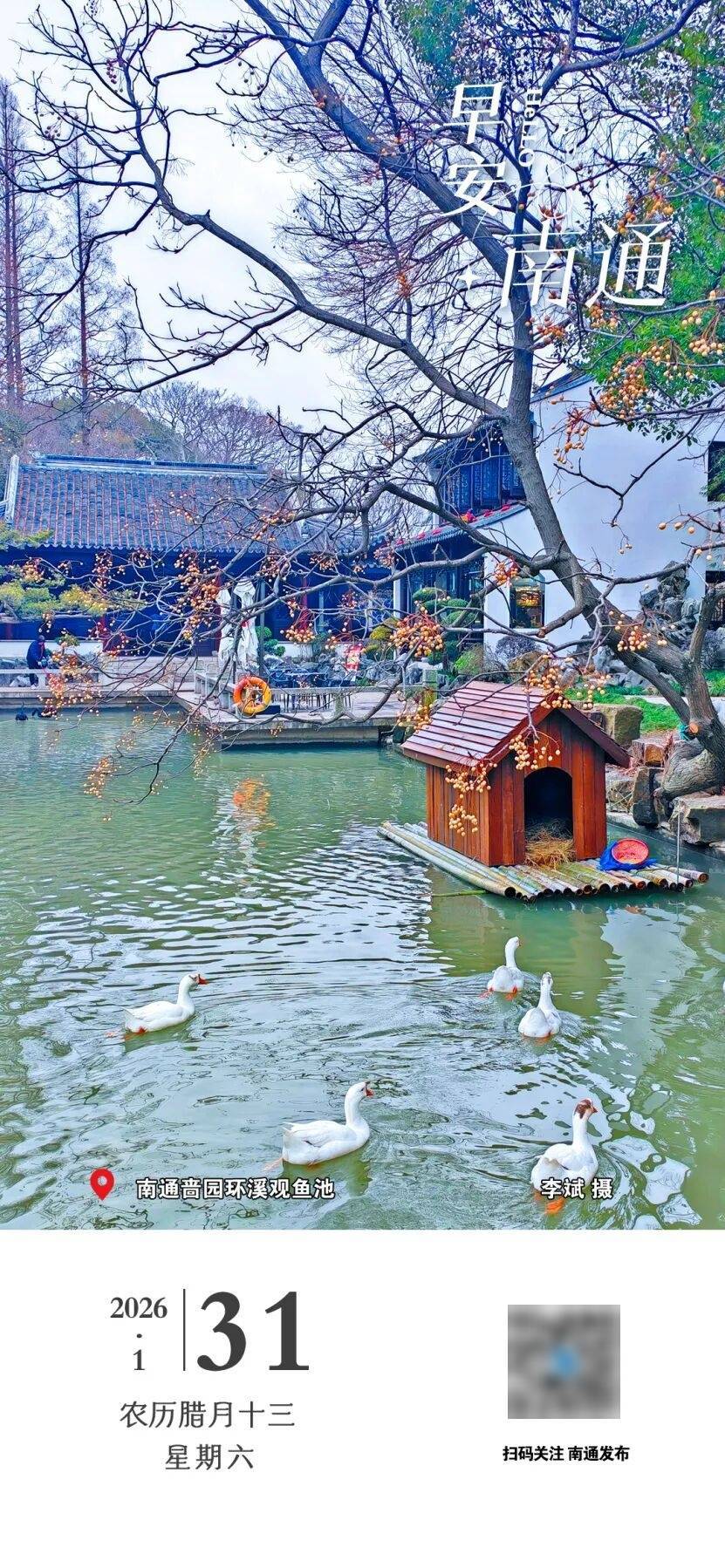 Address 제공항공 ce of the S CITY THE T 南通省国家溪观鱼池 字城 摄 2026 |31 中共中央政治局1月30日召开会议,审议《中央政治局常委会听取和研究全国人大常委会、国务院、全国政协、最高人民法院、最高人民检察院党组工作 汇报和中央书记处工作报告的综合情况报告》。中共中央总书记习近平主持会议。 南 通 昨天,记者从2026"通通来通过大年"春节促消费系列活动新闻发布会获悉,围绕"赶大集、品年味、享实惠、寻年趣"四大主题,我市统筹文体旅商资源, 推出超百场特色活动,并配套消费券、景区优惠、以旧换新补贴等多重福利,全力打造有温度、有年味的马年春节,提振消费活力、惠及千家万户。 今日天气: 今天白天到夜里阴有零星小雨或雨夹雪转多云,偏北风4级左右,沿江江面偏北风4~5级。 今天最高气温:7℃左右,明晨最低气温:-2℃左右。 要 闻 (数据来自南通气象) 外交部发言人30日在例行记者会上表示,英国首相斯塔默对中国进行的正式访问取得丰硕成果,展现了两国合作的广度和深度。中方愿同英方一道落实好 两国领导人重要共识,携手发展长期稳定的全面战略伙伴关系。 "年味儿·情暖通城"主题杂技秀 交 ...