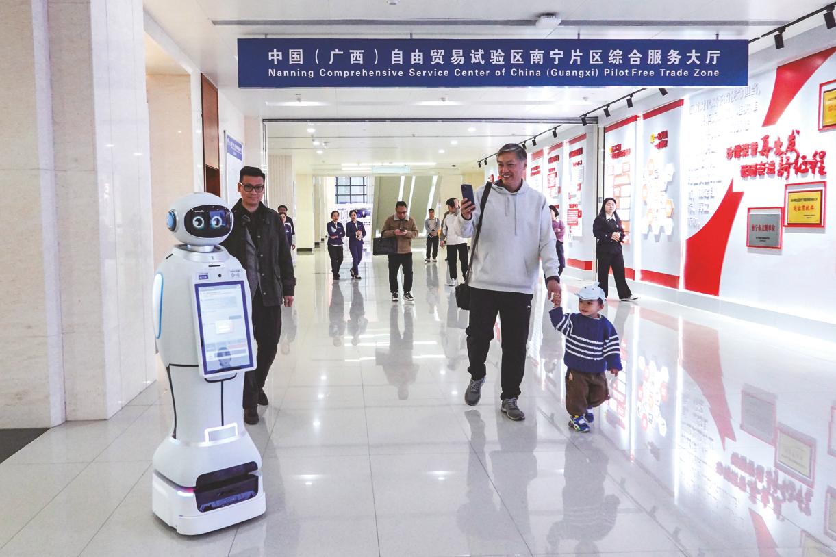 本报讯(记者赵金玲 通讯员谭燕丽)政务服务的效率,关乎企业发展活力,关系群众切身感受。"以前续证总容易忘记,现在证件自动续期,收到短信提 醒,来窗口就能直接领新证,太方便了。"12月26日,在南宁市民中心,一家培训学校的起重机驾驶员韦河切实体验了"无感续证"服务带来的便利。 从"好办快办"的高效便捷,到"无感续证"的省心省力,再到"AI邕心答"的随时在线,南宁市政务服务局推出的一系列智慧政务场景,让企业和群众的获得 感、幸福感不断提升。 近年来,南宁市政务服务局聚焦企业群众"办事慢、多头跑"等痛点,创新推出"好办快办""无感续证""AI邕心答"等一系列智慧政务应用场景,用科技赋能政 务服务,让"高效办成一件事"的承诺转化为企业和群众看得见、摸得着的便捷服务。 在南宁市民中心,智能导办员"小邕"成为办事群众的贴心管家。一句"你好小邕",就能唤醒智能服务——规划最优办事路线、精准带路,还能实时答疑解 惑、讲解办理流程。高峰时段不用排队等候,办事效率大幅提升。 "以前办个证要填十几项信息,耗上大半天时间,现在几分钟就能拿到证,效率太高了。"办完公共场所卫生许可业务的广西庆加盛酒店管理有限公司负责人 顾能昌连连称赞。 ...