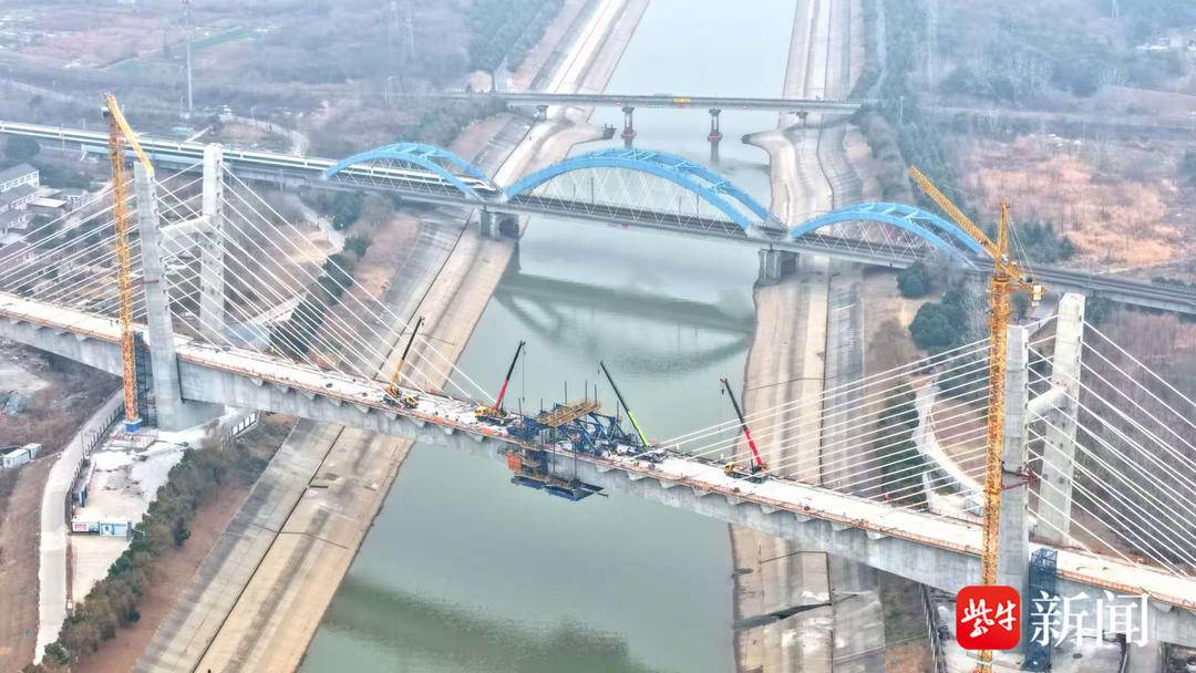 北沿江高铁六合特大桥跨马汊河斜拉桥成功合龙