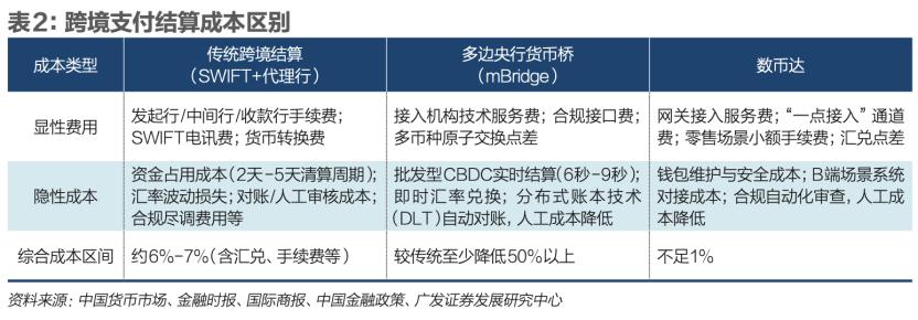 数字人民币2.0机制升级 - 2026年1月1日,《关于进一步加强数字人民币管理服务体系和相关金融基础设施建设的行动方案》正式实施,标志着数字人民币从“数字现金”1.0版进入“数字存款货币”2.0版 [2] - 核心变革在于为商业银行实名数字人民币钱包余额计付利息,目前各运营机构活期存款挂牌利率为0.05%,并纳入存款保险制度,使其具备与传统存款同等的安全保障 [3][18] - 计量框架发生根本性调整,银行钱包中的数字人民币从定位为M0(流通中现金)转变为计入M1(狭义货币),未来可能进入M2(广义货币) [3][16] - 新框架下,银行类运营机构的数字人民币纳入准备金制度管理,钱包余额统一计入存款准备金交存基数;非银行支付机构则需缴纳100%的数字人民币保证金 [15][21] 对银行业务模式的影响 - 计息机制使商业银行可将数字人民币钱包余额作为负债进行自主的资产负债经营管理,从而构建基于数字人民币的“存、贷、汇”可持续商业模式 [3][4][27] - 数字人民币获得信用创造属性,在部分准备金制度下可实现货币乘数效应,据广发证券测算,假设准备金率为6%,其货币乘数可达16.7 [28] - 银行积极落地相关业务,例如工商银行北京分行于1月28日办理了系统内首笔总额10亿元的数字人民币贷款业务 [8] - 银行类运营机构未来的业务探索重点将从C端转向B端(企业端)的对公场景,如供应链金融、工资代发、税费缴纳等 [29][30] 跨境支付应用加速 - 基于区块链技术的多边央行数字货币桥(mBridge)项目实现跨境支付实时到账,将结算时间从传统的3-5天缩短至6-9秒,并显著降低成本 [9] - 自2024年6月试运营至2025年底,mBridge累计处理跨境支付业务4868笔,交易金额折合人民币约4778亿元,其中数字人民币交易额占比约96% [9] - 数字人民币国际运营中心于2025年9月在上海正式运营,推出跨境数字支付平台“数币达”,该平台综合成本不足1%,远低于传统跨境结算约6%-7%的成本 [10][12] - “数币达”平台已与老挝国家支付网络实现互联互通,支持“内包外用”,中国游客在老挝消费可直接使用数字人民币App扫码支付,按实时汇率结算 [13] 技术架构与智能合约生态 - 技术路线坚持“以账户为基础、兼容分布式账本技术特点”,采用“账户体系+币串+智能合约”的数字化方案 [5][21] - 智能合约技术被寄予厚望,数字人民币智能合约生态服务平台支持元管家、智能贷款、智能补贴等标准模板,可实现资金流向的闭环管理和穿透式监管 [22] - 例如,中企云链平台已落地多笔基于数字人民币的供应链保理融资业务,利用智能合约确保融资资金只能定向支付给指定上游企业,规避挪用风险 [22] - 该体系创造了一种兼容但不依赖区块链的智能合约体系,既支持基于银行账户的合约,也兼容基于区块链的链上合约 [22] 运营体系与生态扩容 - 目前官方披露的数字人民币运营机构共十家,包括六大国有银行、招商银行、兴业银行、微众银行(微信支付)和网商银行(支付宝) [5] - 接下来更多商业银行有望加入运营机构阵容,包括股份行和部分头部城商行,同时微信、支付宝等非银支付平台也可能逐步获得开立数字人民币钱包的权限 [5][30][31] - 财付通与微众银行联合项目组表示,2026年将聚焦微信生态,重点拓展政务缴费、医疗健康、公共交通等民生高频场景,并持续扩大商户覆盖范围 [32] - 截至2025年12月末,数字人民币试点地区累计交易金额19.5万亿元,处理交易笔数35.7亿笔,累计开立个人钱包2.3亿个、单位钱包1908万个 [24] 全球数字货币发展路径分化 - 中国坚定走央行数字货币道路,并将“稳步发展数字人民币”写入“十五五”规划建议,同时持续打击包括稳定币在内的虚拟货币炒作 [6][34] - 美国则通过《天才法案》确立美元稳定币的合法地位,并通过《反央行数字货币监控国家法案》全面限制美联储发行央行数字货币 [6][33] - 美元计价的稳定币占全球稳定币总市值的99%以上,其储备资产以美债为主,有观点认为美国发展稳定币路线意在巩固美元霸权 [37] - 欧盟计划推出数字欧元以维护货币主权,欧央行已宣告数字欧元完成技术准备,2026年将开启立法程序 [37]