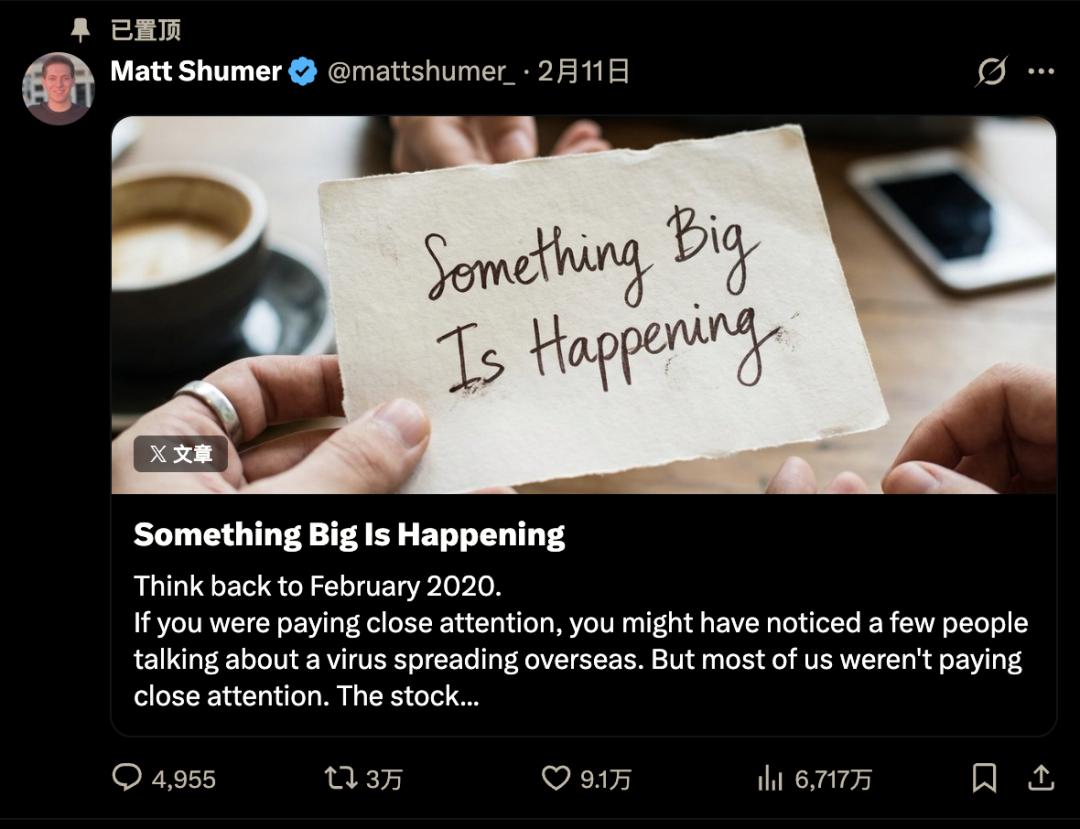 AI技术发展的现状与认知 - 科技行业内部人士,特别是AI研发人员,正经历普遍的生存焦虑,认为2026年将是人类历史的关键转折点[4][13] - 圈外公众对AI的认知严重滞后,仍停留在早期版本(如2023/2024年的ChatGPT)或糟糕的用户体验上,与行业内部的深刻认知形成巨大鸿沟[8][9][27] - 一篇题为《大事正在发生》的文章在24小时内获得超过2000万阅读量,反映了行业内部试图向外界传达紧迫信息的努力[9] AI能力呈现指数级突破 - 2026年2月5日,OpenAI的GPT-5.3 Codex和Anthropic的Claude Opus 4.6同日发布,标志着AI能力出现断层式提升[15] - 当前最先进的AI已能完成复杂任务:用户用自然语言描述需求后,AI可独立完成数万行代码的编写、自我测试、迭代修改,并交付近乎完美的成品[15][16] - AI开始展现出曾被认为人类独有的“判断力”和“品位”,具备了某种形式的主体性,而不再是被动的工具[16][17] - AI自主完成任务的能力(以人类专家耗时衡量)从一年前的约十分钟,提升至近五小时,且该能力大约每七个月翻一倍,近期可能加速至每四个月翻一倍[18] - Anthropic的CEO预测,在2026或2027年,AI模型将在几乎所有任务上比几乎所有人类“聪明得多”[18] 递归自我提升与“智能爆炸” - OpenAI披露,GPT-5.3 Codex是其首个在自身创建过程中发挥关键作用的模型,即AI帮助构建了它自己[22][23] - Anthropic公司“大部分代码”已由AI编写,当前一代与下一代AI之间的反馈循环正“逐月积聚力量”,距离“AI自主构建下一代AI”可能只有一到两年[24] - 行业核心人物(如xAI联合创始人、Anthropic CEO)均认为“递归式自我提升循环”很可能在未来12个月内上线,这将开启“智能爆炸”:每一代更聪明的AI以更快的速度构建下一代[4][24] AI对白领工作的替代已经开始 - AI针对的是认知劳动的全面替代,未来1到5年内,预计将取代50%的初级白领工作,且这一预测在业内可能被视为保守[33] - 多个专业领域已受到直接影响:法律(合同审阅、判例调研)、金融(模型构建、研报撰写)、医疗(读片诊断)、编程(项目开发)等[34][35][36][37] - 变革的时间表不是“将来”,而是“已经开始”,许多行业的资深从业者(如律所合伙人)已开始深度使用AI,并预见其将很快完成自身大部分工作[29][38] 个人与企业的应对策略 - 必须开始认真使用AI:订阅最强的付费模型,避免用落后的免费版评判技术上限[39] - 改变使用方式:将AI深度嵌入实际工作流程,处理复杂、完整的任务(如审阅完整合同、分析季度数据),而非进行简单问答[39] - 保持实验与学习:每天花一小时尝试让AI完成一项新的、不确定能否处理的任务,坚持半年将对未来有远超他人的理解[40] - 调整财务与职业规划:建立财务缓冲,谨慎承担长期债务;放下专业自尊,积极拥抱工具;培养下一代成为适应力强、能利用AI的创造者,而非为可能消失的职业做准备[40] - 认识到机会:AI将知识和创造的门槛降至近乎为零,为拥有热情和好奇心的普通人提供了前所未有的杠杆,能释放远超传统团队的能量[43] 时代的分水岭与能力再分配 - 2026年被视为一个分界线,旧世界的游戏规则正在结束,人类历史上最大的能力再分配正在发生[43][44] - 未来呈现“K型分化”:理解并驾驭趋势的人将进入一个“拥有神力”的时代;对此视而不见的人将面临逐渐被边缘化的风险[9][42][44] - 变革的规模被认为将远超新冠疫情,但公众普遍处于“这未免太夸张了吧”的认知阶段,类似于2020年2月疫情爆发前夕[11]