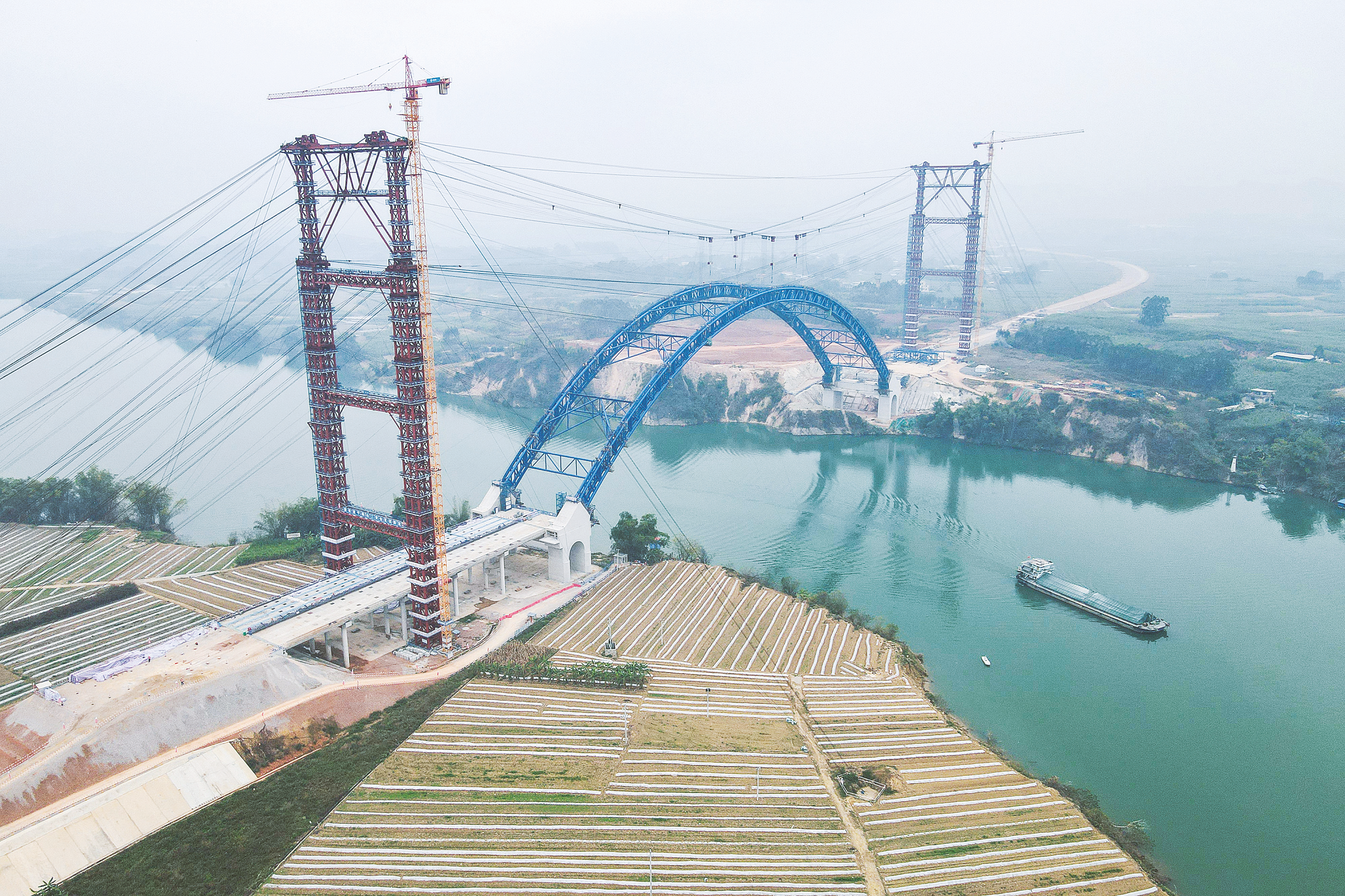 项目进展 - 南宁南过境线(吴圩机场至隆安延长线段)公路项目的关键控制性工程——上正右江特大桥拱肋于1月15日顺利合龙,后续将推进桥面吊装等工程 [3] - 该项目是南宁二环高速公路的组成部分,主线全长14.347公里,设计速度120公里/小时,路基宽28米,采用双向四车道高速公路建设标准 [3] - 截至目前,项目整体建设进度已达60%,建成后将进一步完善南宁高速公路网,提升交通基础设施互联互通水平 [3] 项目详情 - 项目起点位于西乡塘区坛洛镇,设坛洛西枢纽互通接吴隆高速公路、广昆高速公路,路线经坛洛镇、金陵镇和丁当镇,终点设丁当东枢纽互通与贵北高速公路相接 [3] - 上正右江特大桥主桥采用288米下承式钢管混凝土刚架系杆拱桥结构,全桥主拱共24个节段 [4] 技术与施工 - 在特大桥施工过程中,建设方运用了BIM管理、智能监测、三维激光扫描、智能吊装控制等技术,攻克了高空作业精度控制等多项难题 [4] - 特大桥施工采用缆索吊智能集中控制监测系统,实时监测主承重索、牵引索、缆风索、扣索、背索的索力及起重拉力、塔偏等参数,并将视频与数据平台结合以真实反映现场吊装情况 [4] - 该智能监测系统在出现异常时会自动报警,确保了缆索吊系统的安全稳定运行 [4]