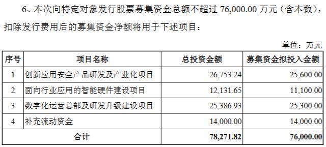 公司融资计划 - 公司拟通过向特定对象发行股票募集资金总额不超过7.6亿元 [1] - 募集资金将用于四个项目:创新应用安全产品研发及产业化项目、面向行业应用的智能硬件建设项目、数字化运营总部及研发升级建设项目及补充流动资金 [1] 募投项目详情 - **创新应用安全产品研发及产业化项目**:拟投入2.56亿元,占总募资比例超三分之一,项目建成后主要用于eSIM等创新嵌入式安全产品的研发、生产和制造,同时建设针对海外数字ID卡件和数字人民币硬钱包产品的试验线 [2] - **数字化运营总部及研发升级建设项目**:拟投入2.53亿元,计划在北京购置并装修办公场所及数字展厅,同时引入先进研发设备和工具,招聘高素质研发技术人才,以强化公司在数字安全及数智服务领域的关键技术研究和产品认证能力 [2] - **面向行业应用的智能硬件建设项目**:拟投入1.11亿元,项目实施后,公司融合大模型技术的智能硬件产品将实现从外协到自产的转型,提升在政府、金融等行业智能硬件产品与技术服务的自主供给能力,并增强数字人民币硬件模块、终端设备的产品稳定性及大模型技术融合能力 [2] 公司背景与战略意图 - 公司是国内智能卡领域的主要企业之一,主营业务涵盖金融IC卡与非金融IC卡的研发、生产与销售,并涉及数字人民币硬件钱包、智能终端等业务,于2021年3月上市 [3] - 公司表示此次定增旨在满足资金需求,合理布局业务板块、实现战略目标,整合资源以增强核心竞争力并加快规模化发展 [3] - 业内人士认为此次定增体现了公司在金融科技、数字人民币、智能硬件等前沿领域加速布局的长期战略意图,以及技术升级和业绩增长的内在需求 [3] 公司近期业绩表现 - 公司归母净利润在2022年达到1.66亿元的高点后,2023年同比下降57.58%,2024年同比下降69.38%,降幅呈现逐年扩大趋势 [3] - 根据最新业绩预告,预计2025年度公司实现归母净利润800万元,同比下降62.89%;扣非净利润120万元,同比下降93.38% [3]