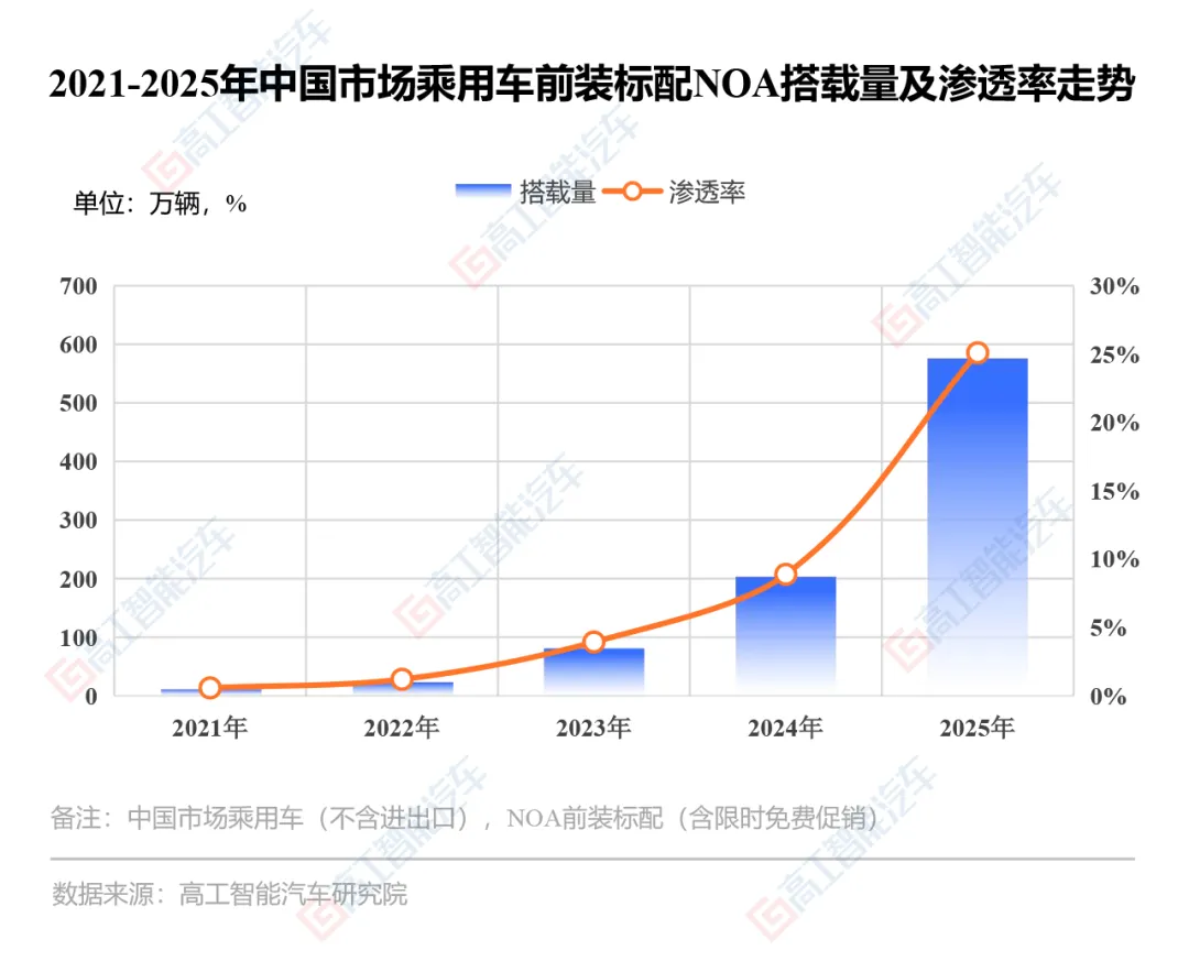 市场格局与核心参与者 - 2021-2025年中国市场乘用车NOA方案商市场份额榜单显示,华为和轻舟智航合计占据超过60%的市场份额,共同领跑市场 [1] - 华为以41.28%的市场占有率位居行业第一,轻舟智航以21.04%的市场占有率位居第二 [1] - 行业前四的方案商还包括Momenta和卓驭科技 [1] 市场发展规模与渗透率 - 过去五年,NOA功能从前装标配年交付量11.8万辆跃升至576.7万辆,年复合增长率高达164.4% [1] - NOA功能在乘用车市场的渗透率从不足1%提升至25.1% [1] - 2025年,NOA在15万元以下价格区间车型的渗透率达到17.5%,其中10万元以下区间渗透率为9.3%,10-15万元区间渗透率已超过23% [4] 领先方案商轻舟智航的量产表现 - 轻舟智航辅助驾驶搭载量已突破100万台 [1] - 公司从2021年底布局L2++,用了近3年完成50万台的量产交付,而从50万台到100万台仅用了8个月 [4] - 公司已与近10个汽车品牌达成深度合作,包括理想、奇瑞、吉利、上汽、广汽等,覆盖23款车型,价格区间覆盖8万至40万元主流市场 [4] 技术产品与安全性能 - 轻舟智航推出行业首个单征程6M安全端到端城市NOA方案,并以128TOPS算力实现了媲美256TOPS算力的体验 [5] - 该方案首发搭载于理想L系列智能焕新版 [5] - 公司用户累计使用辅助驾驶行驶里程已超25亿公里,智能泊车辅助使用次数近1亿次 [5] - AEB误触发率低至每40万公里少于1次,年均帮助用户避免潜在事故超14.6万次 [5] 未来趋势与公司战略 - 2026年,轻舟智航计划推动城市NOA向10万级车型快速普及 [4] - 行业竞争正聚焦于“用户体验与安全”,头部供应商将继续凭借技术能力和规模优势巩固壁垒 [4] - 城市NOA将全面进入规模化、普惠化落地深水区,轻舟智航有望凭借市场份额、量产成绩与安全技术路线,推动NOA功能标配和“智驾平权” [6]