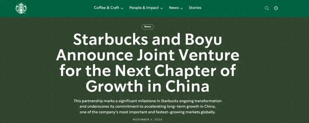 星巴克董事长倪睿安表示,博裕投资的本地经验将加速中小城市及新兴区域拓展;博裕投资合伙人黄宇铮称将融合全球品牌力与本土洞察,深化本土化创 新。星巴克中国CEO刘文娟提及,合作将释放市场潜力,推动行业升级。 11月4日,星巴克咖啡公司宣布与中国另类资产管理公司博裕投资达成战略合作,双方将成立合资企业运营中国市场零售业务,标志着星巴克入华26年来 首次出让业务控股权。根据协议,博裕投资将持有合资企业至多60%股权,星巴克保留40%股权,并持续作为品牌与知识产权授权方。 交易基于约40亿美元(不计现金与债务)的企业价值,星巴克预计中国零售业务总价值超130亿美元,涵盖股权出让收入、剩余40%权益价值及未来10年 以上的授权收益。新合资企业总部仍设于上海,将管理现有8000家门店,双方计划逐步将门店规模拓展至20000家。 此次交易历经多轮竞逐,自2024年下半年传出股权出售消息后,今年5月正式启动流程,吸引高瓴、凯雷、大钲资本等超20家机构参与,最终博裕投资胜 出。资料显示,博裕投资成立于2011年,投资组合超200家企业,近年入股蜜雪冰城等餐饮品牌,具备消费领域深耕经验。 据悉,交易预计2026财年第二季度完成,尚 ...