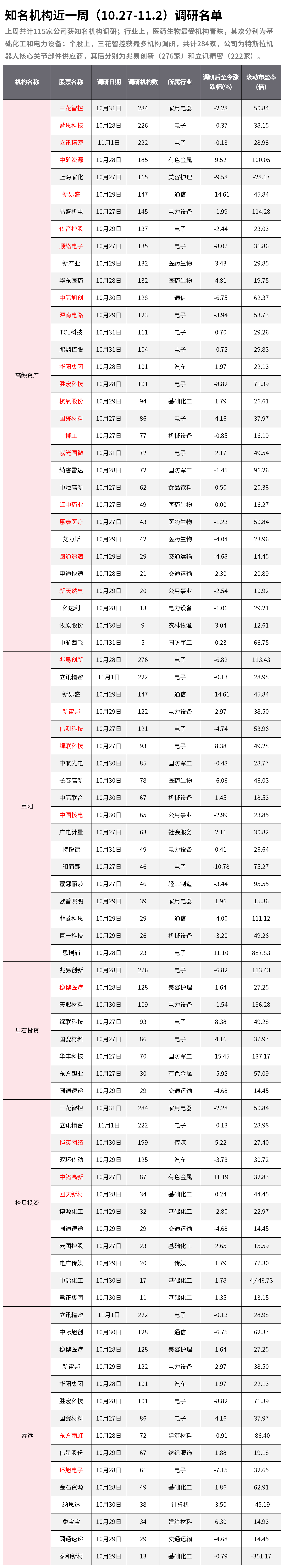 知名机构近一周(10.27-11.2)调研名单:机构扎堆这只特斯拉机器人龙头