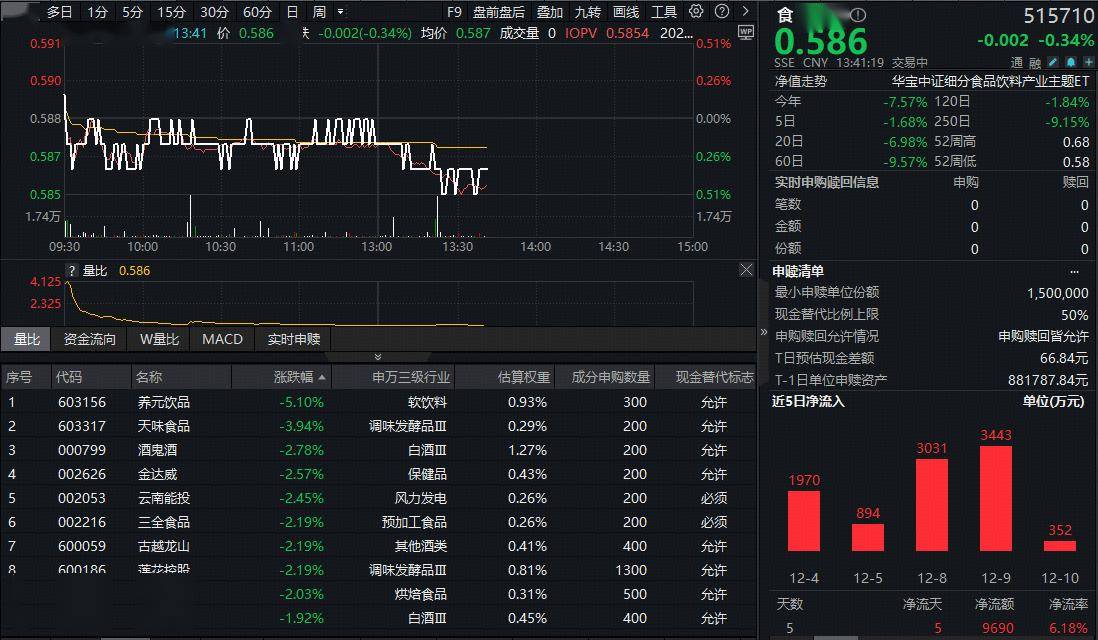 ETF盘中资讯|茅台五粮液狂派400亿红包!资金越跌越买,食品ETF(515710)近5日吸金超9600万元!